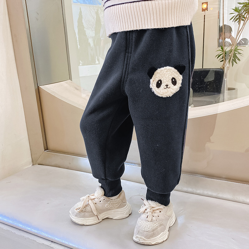 Girls plus fleece warm pants integrated fleece baby spring and autumn sports pants children's autumn and winter children's pants thin fleece