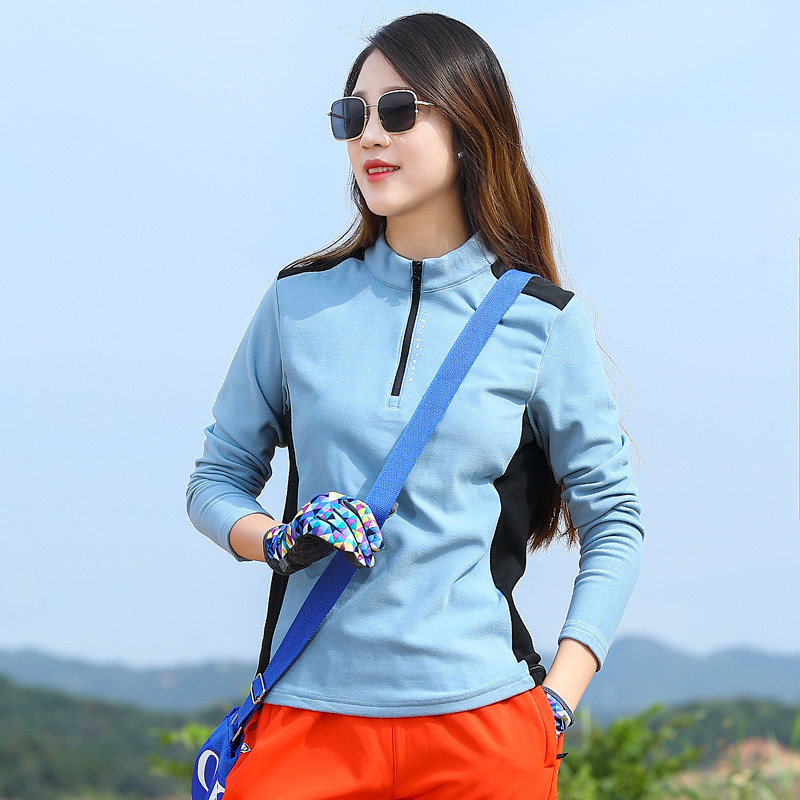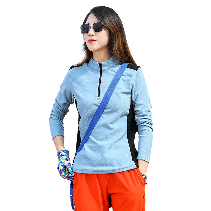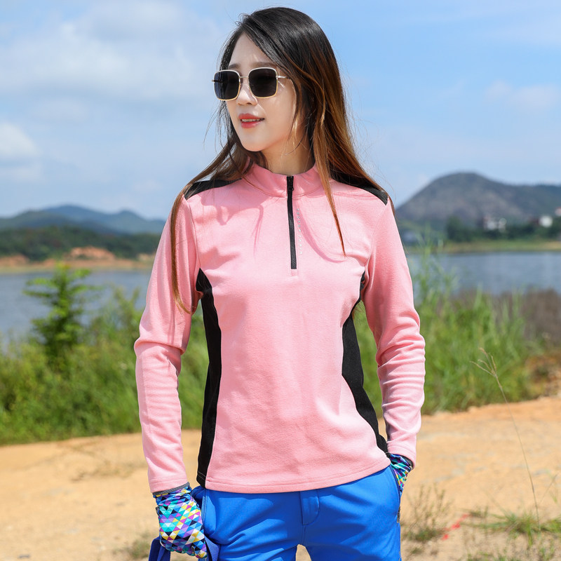 Outdoor sports speed dry clothes women long sleeves T-shirt blouses with velvet-velvety and warm hiking and hiking and sweat and air