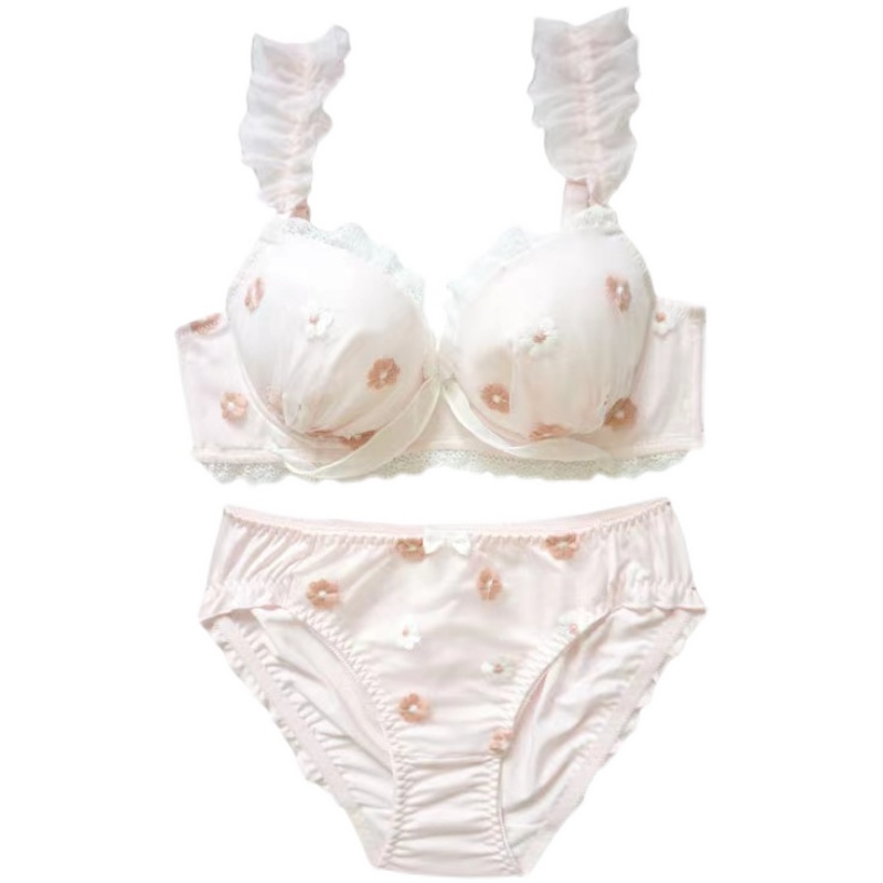 Sweet and cute girl's underwear comfortable with steel ring embroidered thin cup large chest display small underwear suit large size to gather