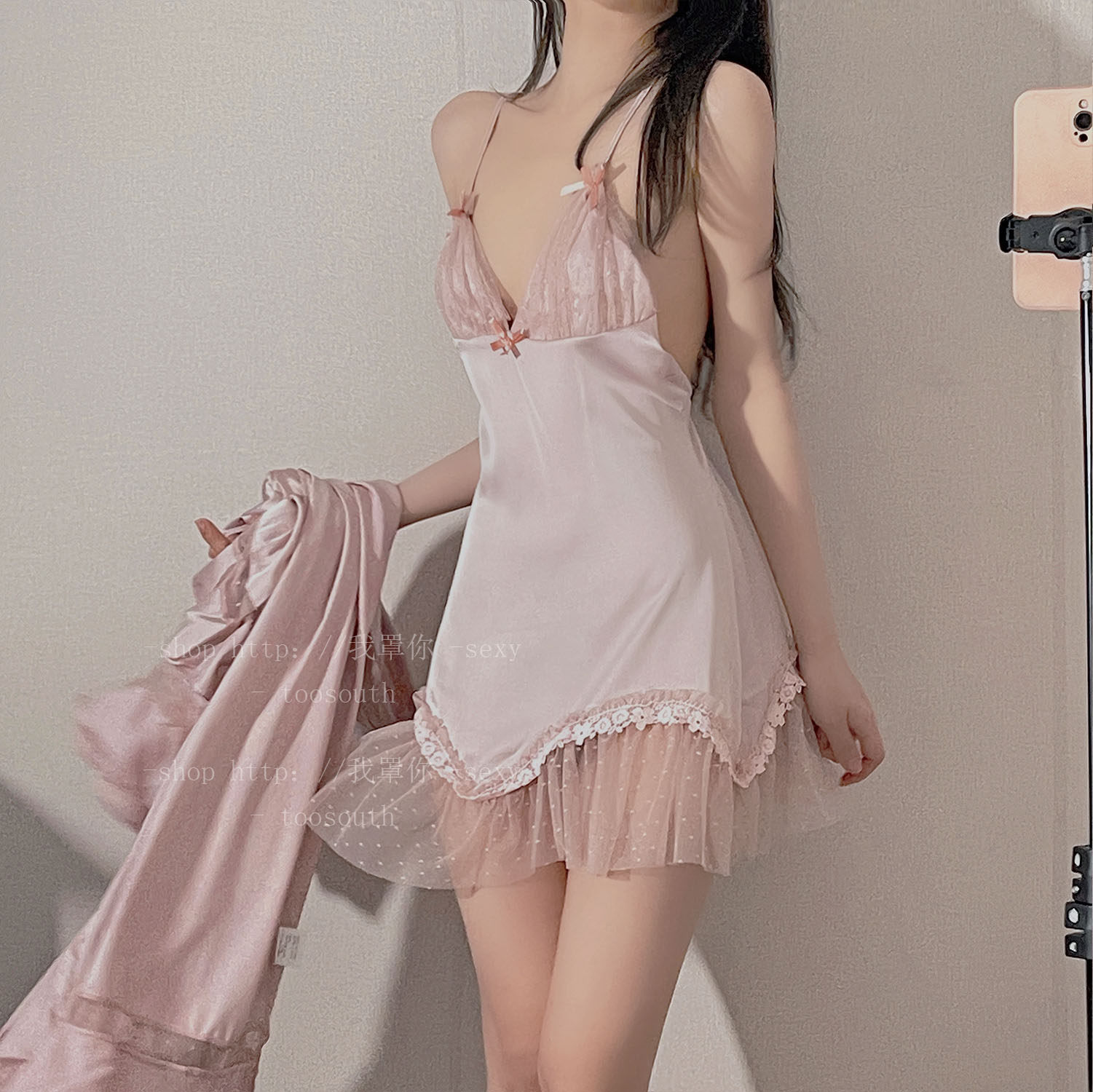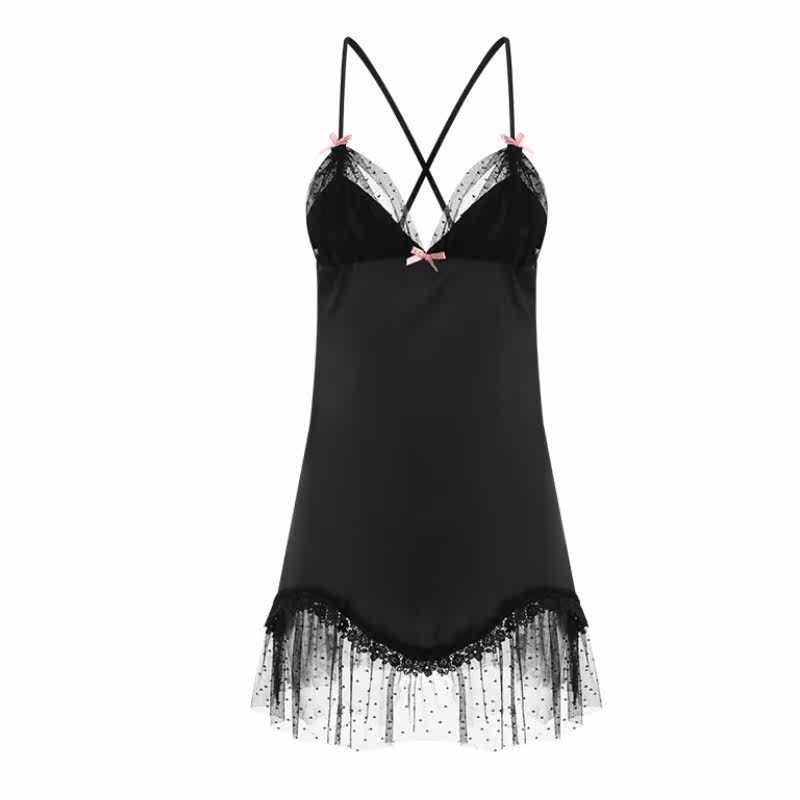 I cover you sweet princess wind lace sexy sleepwear private room harness pyjamas sleeping dress ice silk long sleeve sleeping robe home.