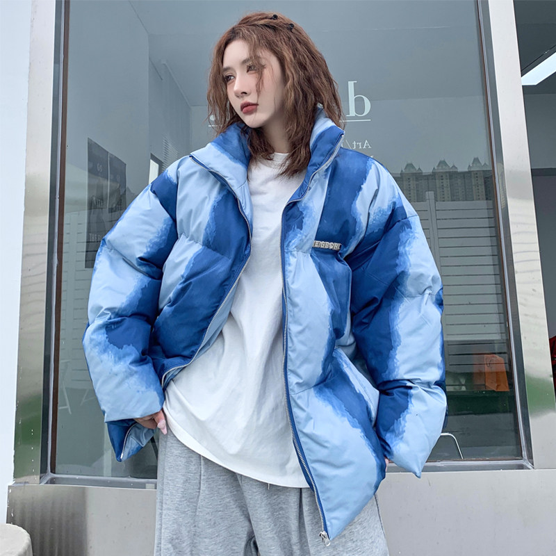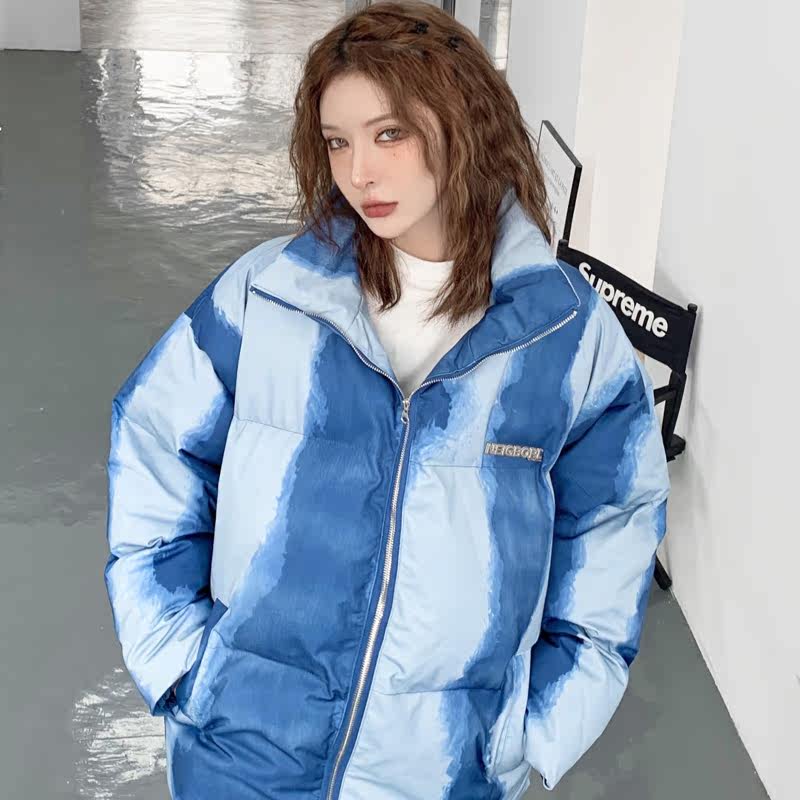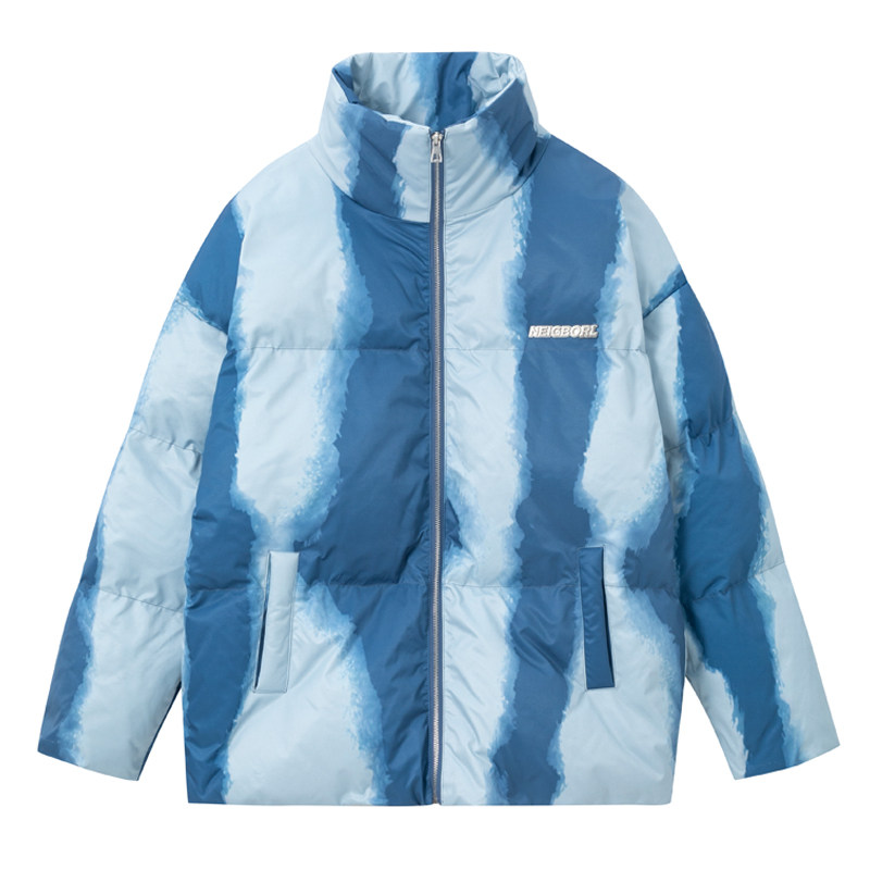 NEIGBORL Tide Brand Tie-Dye Gradient Cotton Clothes Men's and Women's New Winter Stand Collar Couple Cotton Clothes Casual Thickened Coat
