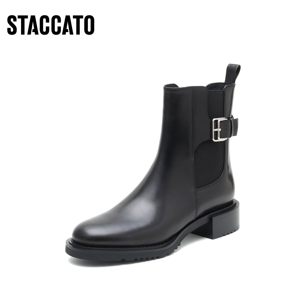 Staccato winter new fashion British style medium boots thick heel fashion boots women's leather boots D2598DZ1