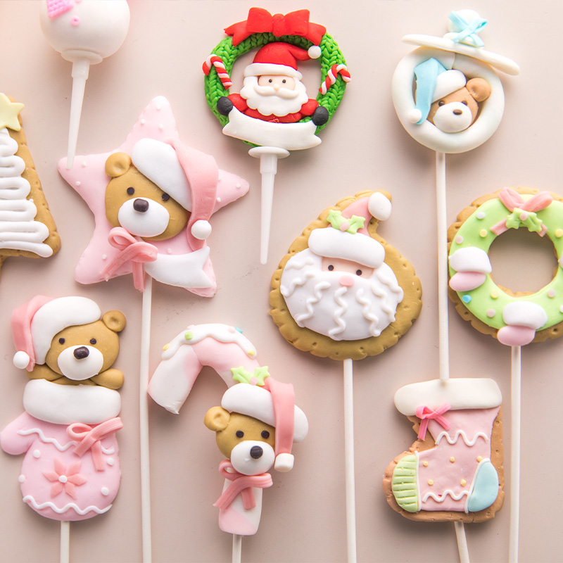 (Christmas tree) (Christmas stocking studs) (Christmas donut) (cute old man) (pink scarves snowman) (sleeping bag bear) (playful socks) (snow baby) (