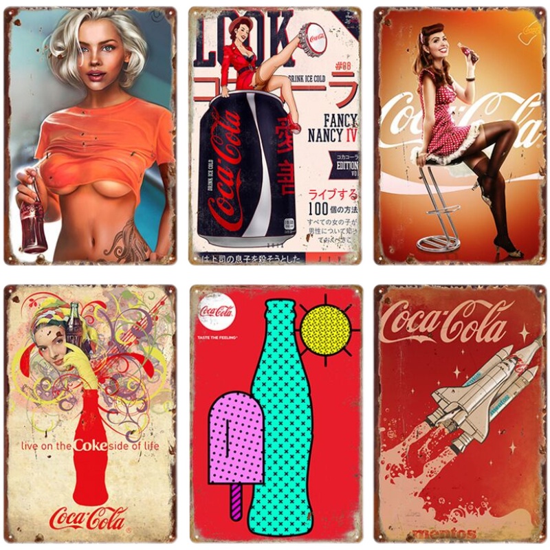 Retro Cola Advertising Poster Tin-skin Painting Bar Background Wall Household Decoration Painting