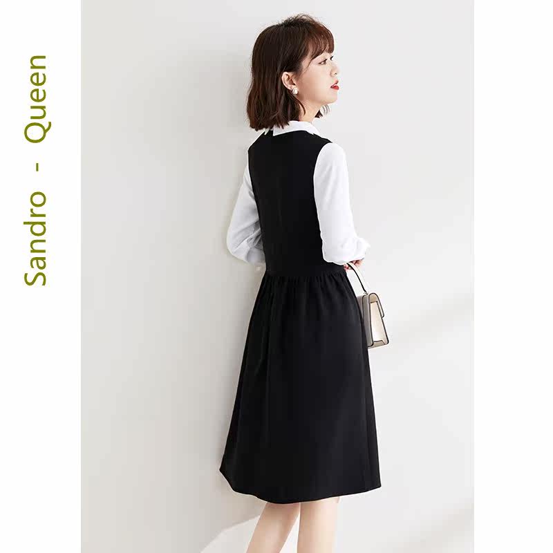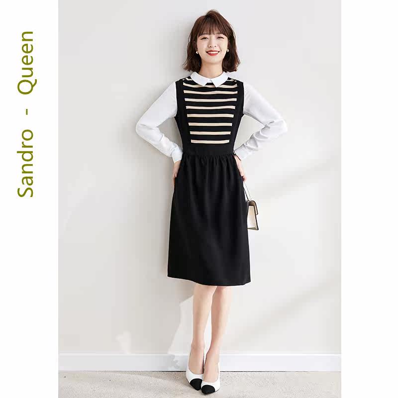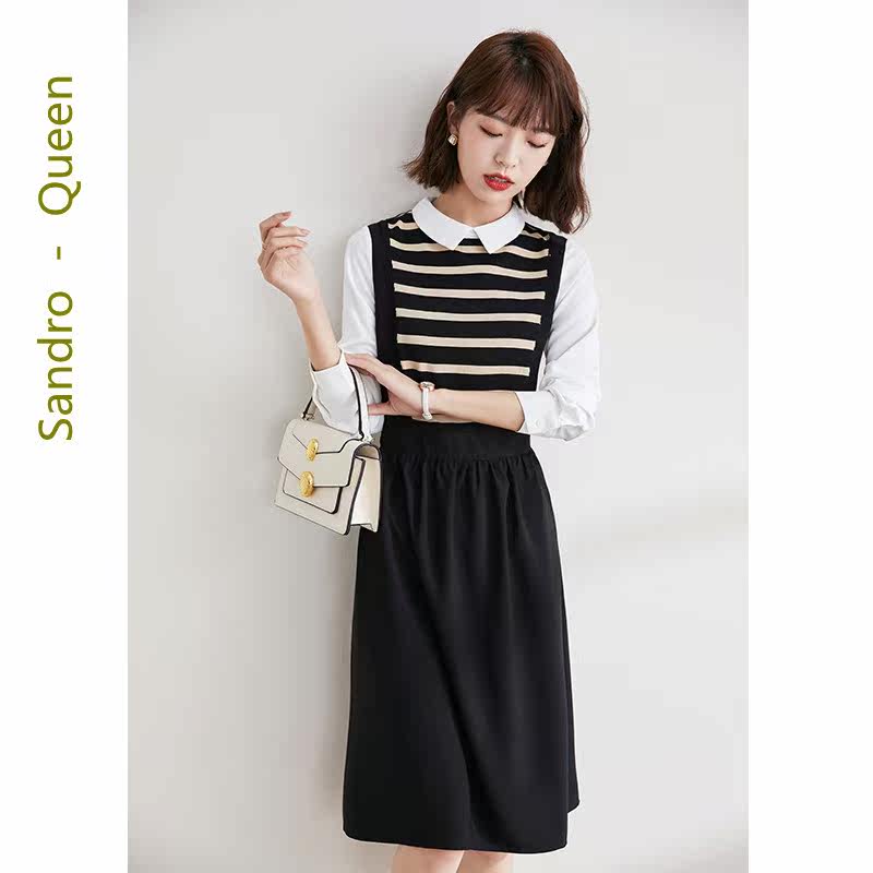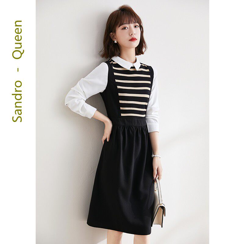 Sandro Queen fake two-piece shirt dress 2021 new long-sleeved striped women's fashion stitching long skirt