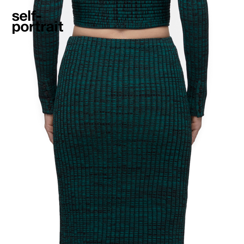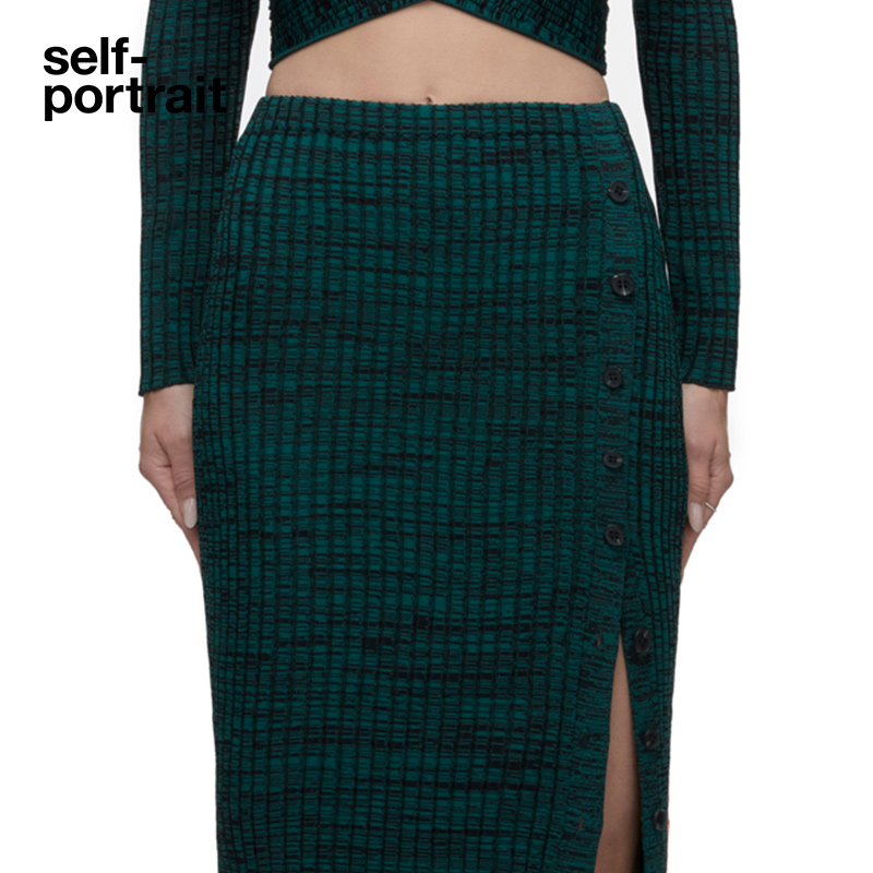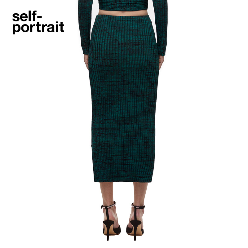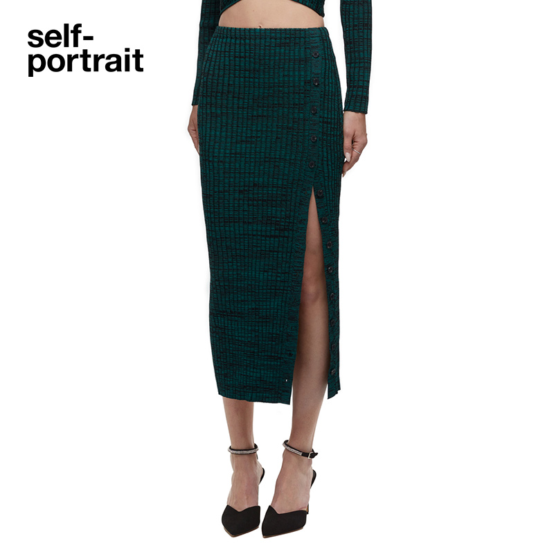 self-portrait 2021 autumn and winter green mixed color slit bag hip skirt long skirt