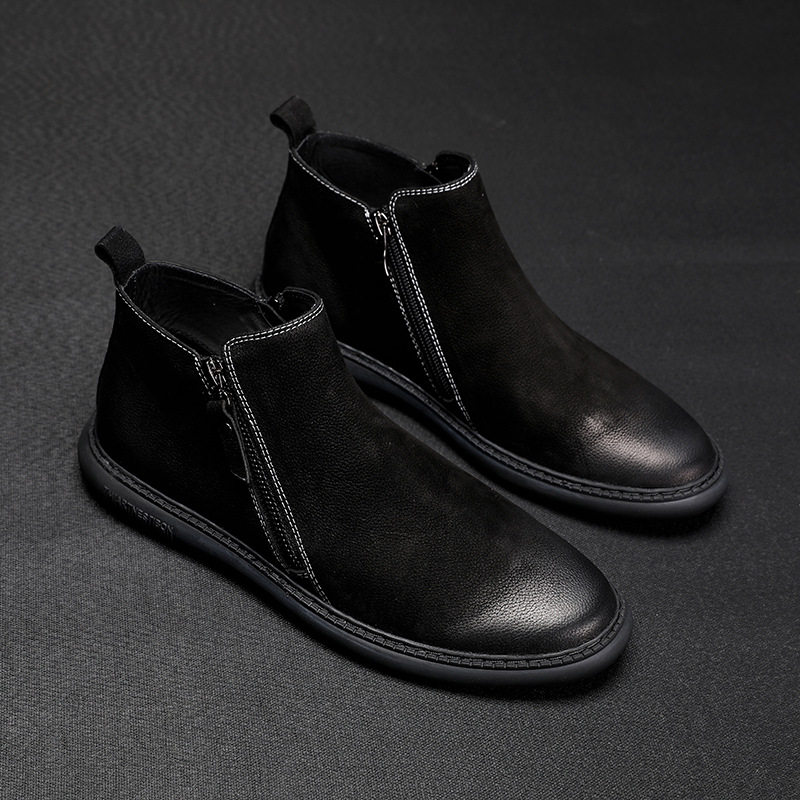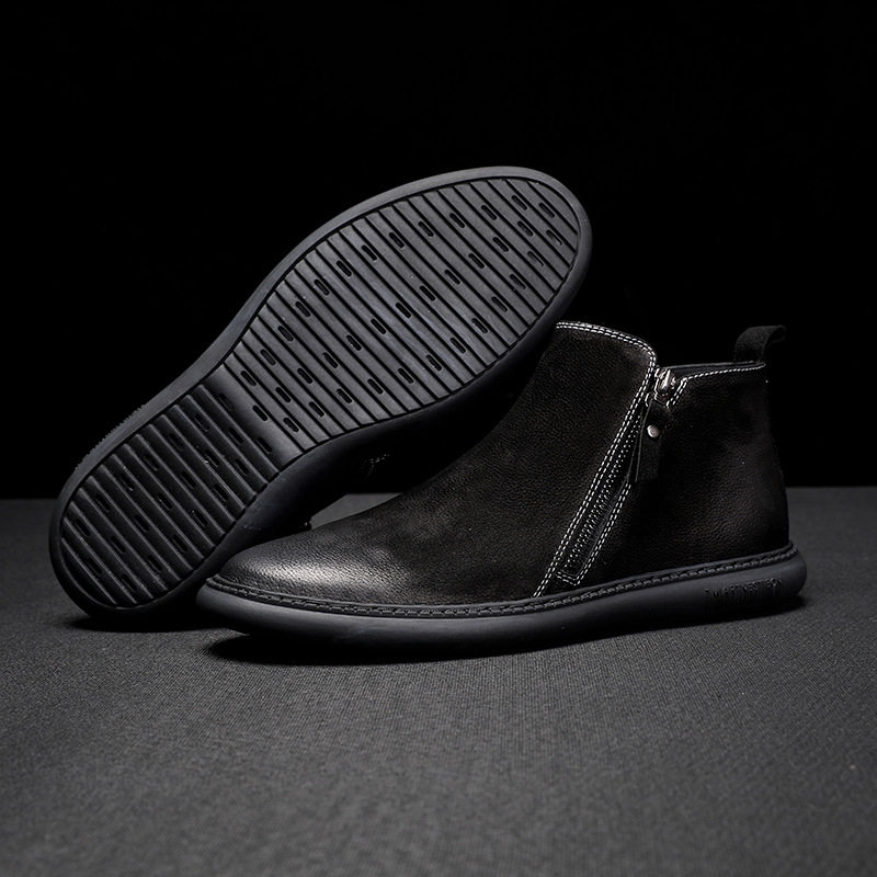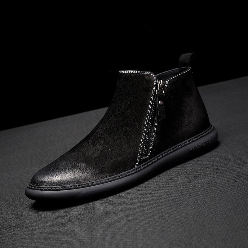 AMGCK fashion scrub Martin boots casual warm high-top shoes leather plus velvet short boots male Hong Kong