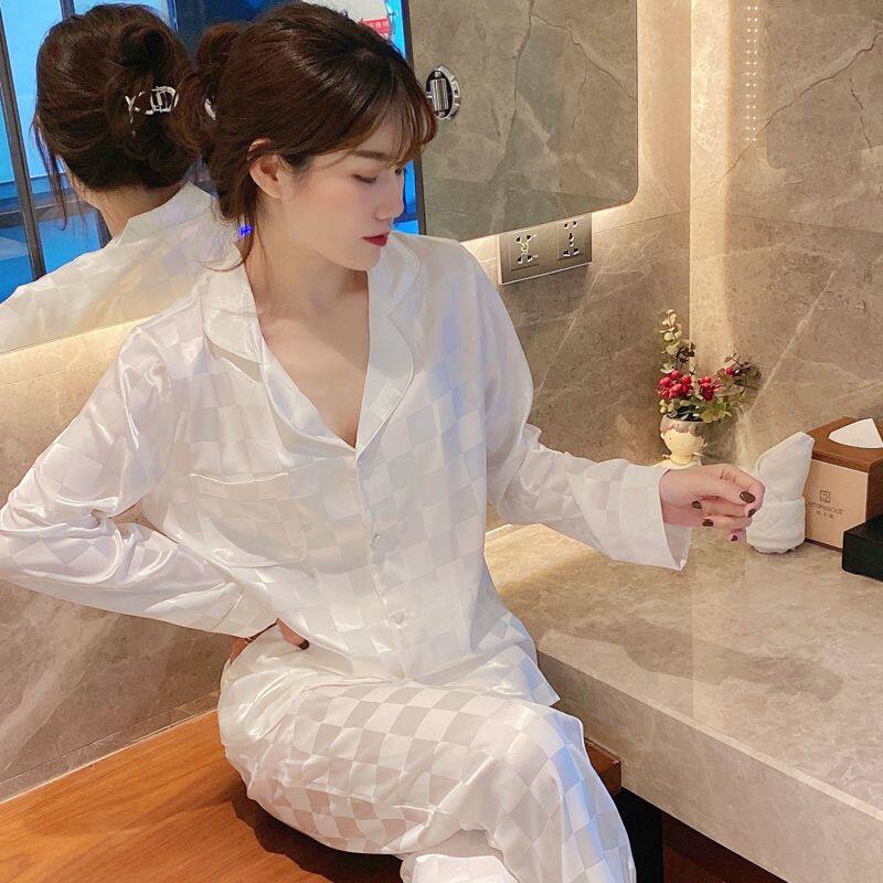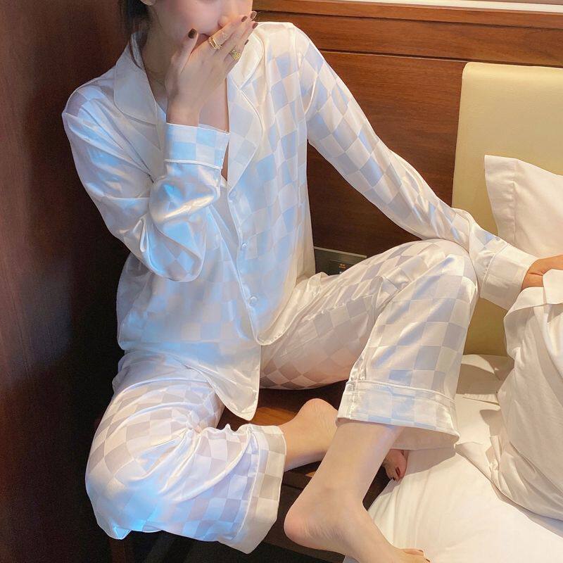 Mulberry silk silk pajamas women's spring and autumn new sexy long-sleeved trousers two-piece suit loose home clothes can be worn outside