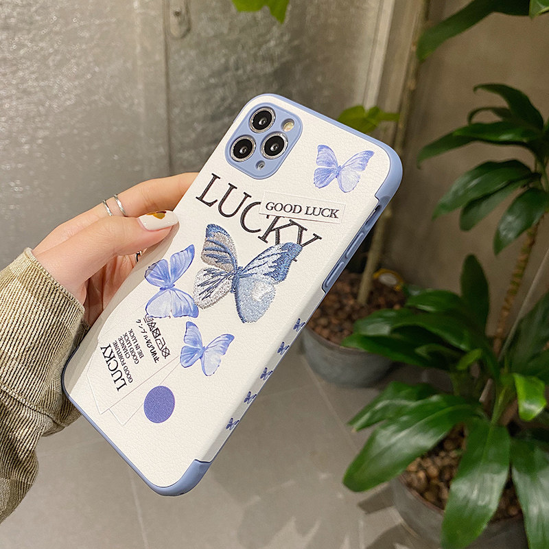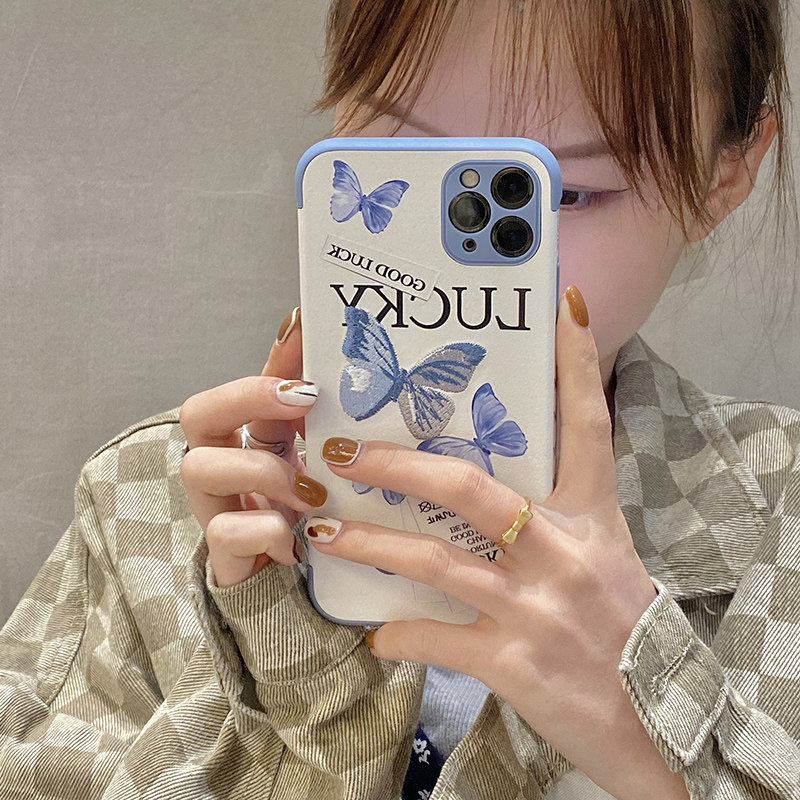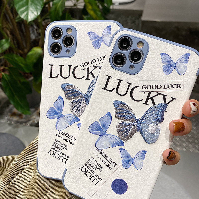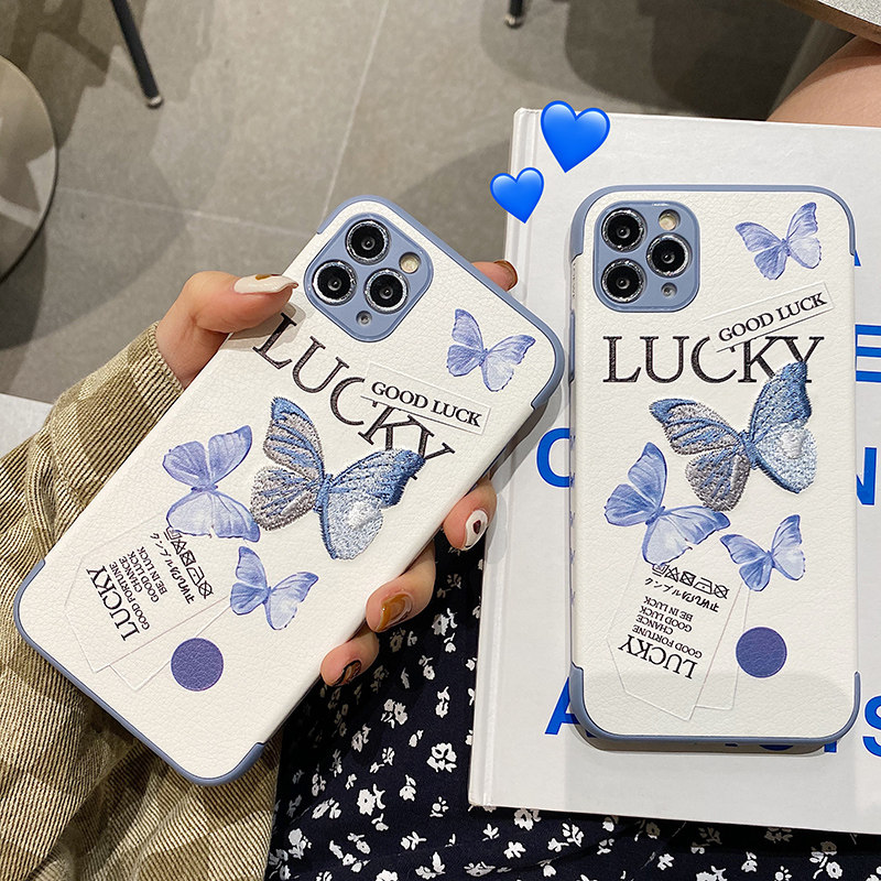 LUCKY embroidered butterfly suitable for apple 11 mobile phone protective shell iphone12pro leather apple 13 soft shell xsmax women's xr creative 7P niche ins wind 8p