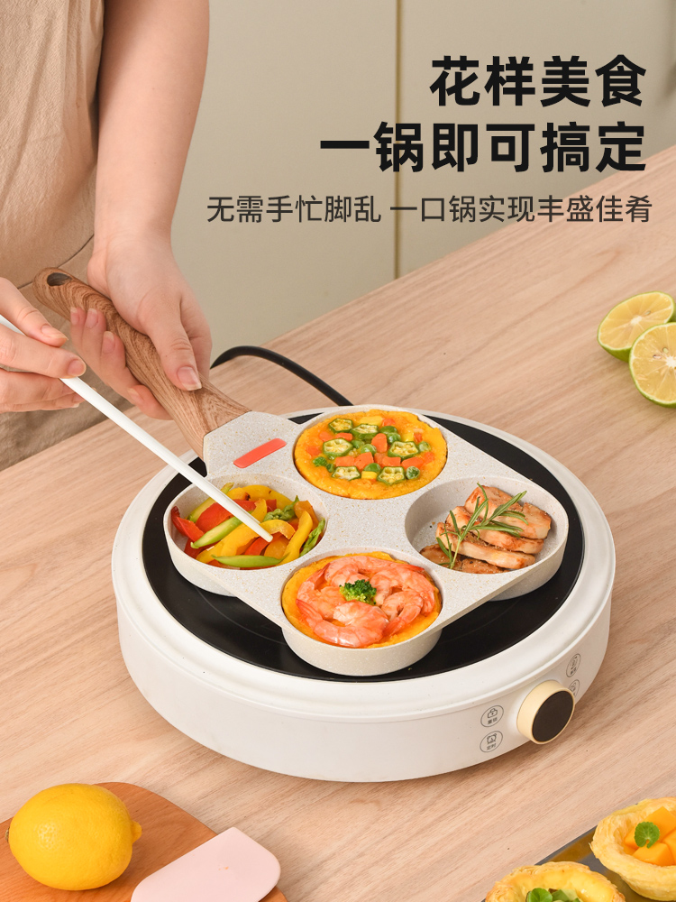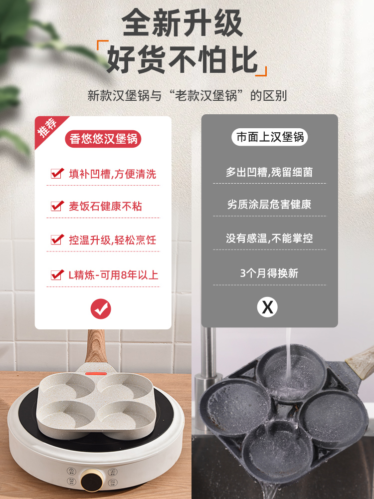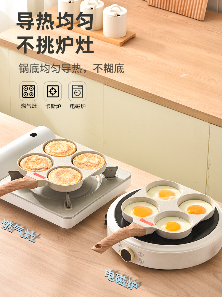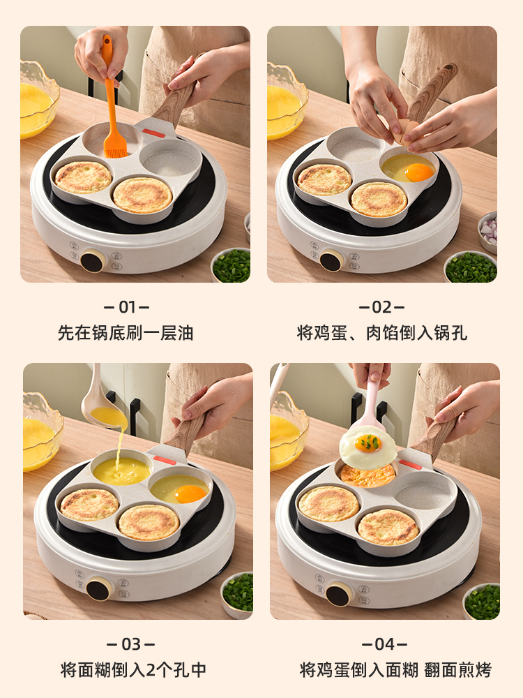 Gas stove type-ceramic white-four-hole hamburger pan (antibacterial sticky pan package return) gas stove type ceramic white four-hole hamburger pan gift antibacterial sticky pan return] general purpose-ceramic white-four-hole
