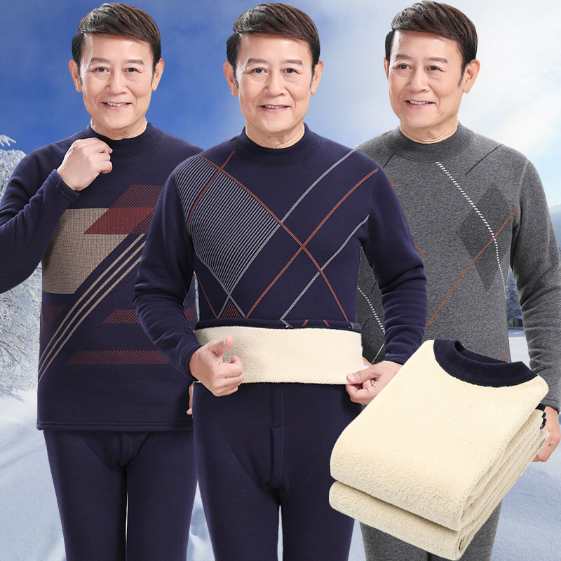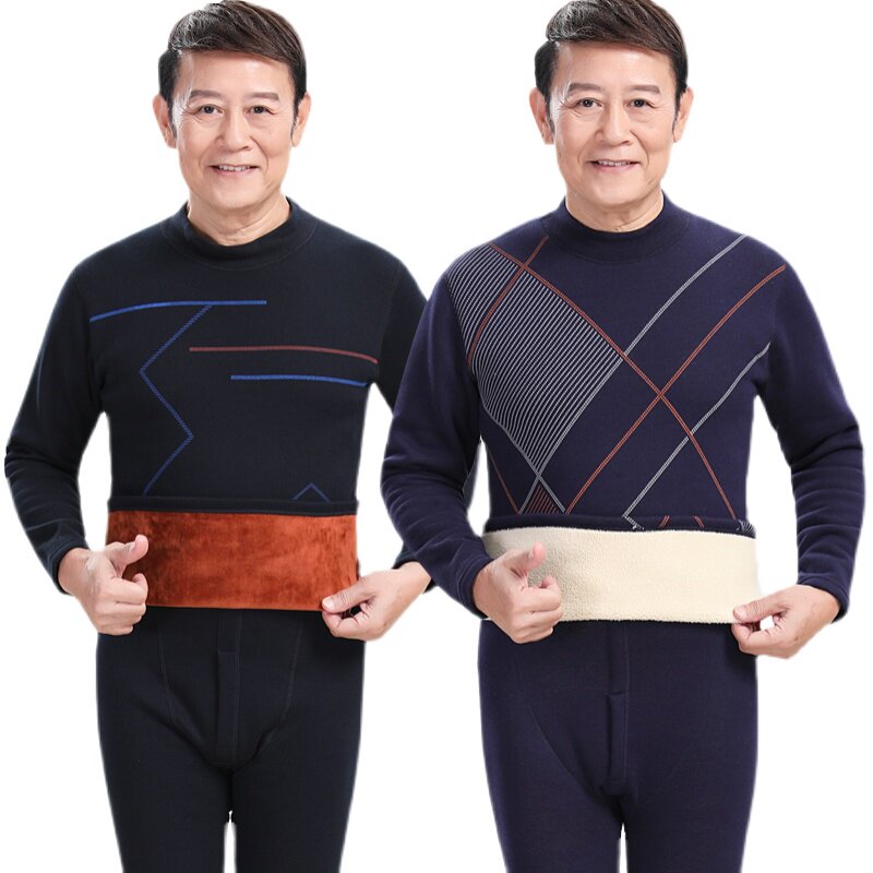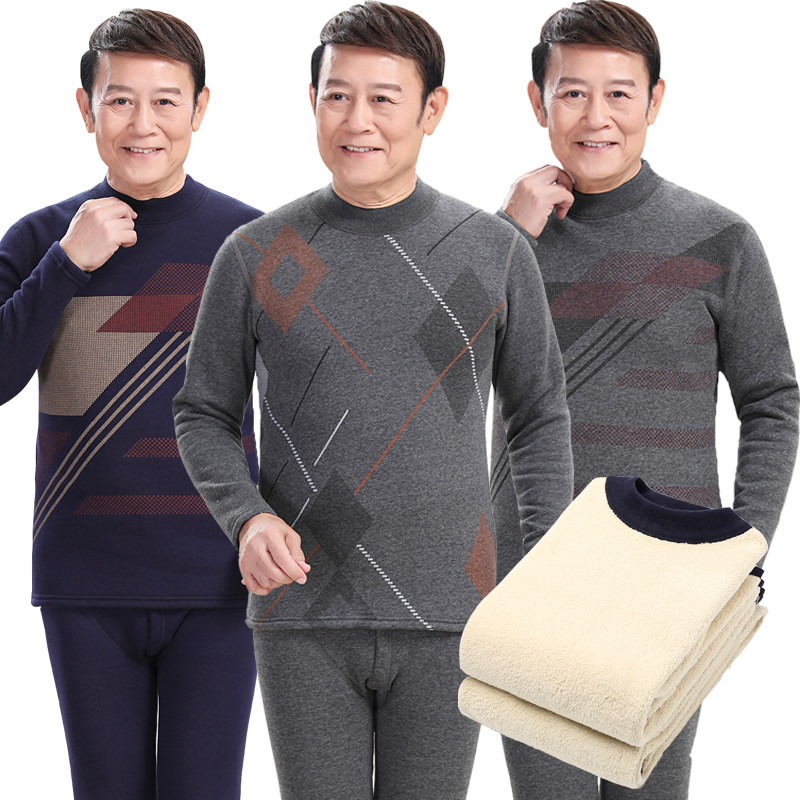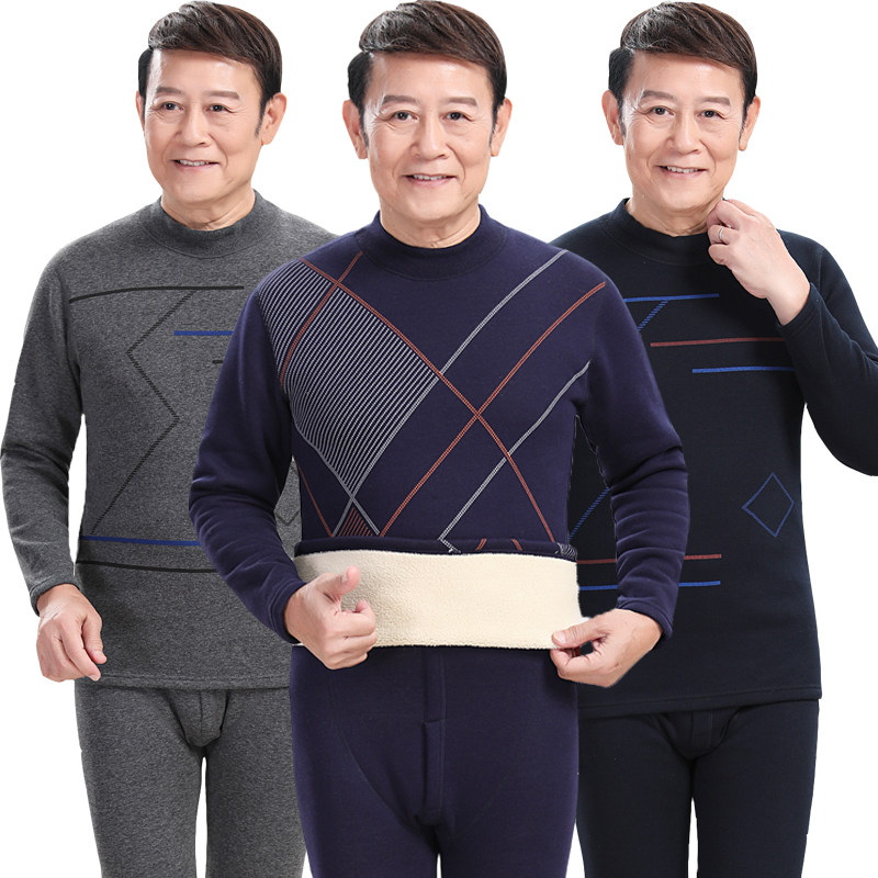 Thermal underwear men's fleece thickened mid-high collar middle-aged and elderly people mid-high collar autumn clothes and long johns large size suit winter