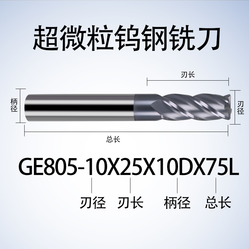 Tungsten steel milling cutter 4-edge flat-bottom milling cutter CNC numerical control cutter high speed machine with 60-degree lengthened hard alloy vertical milling cutter
