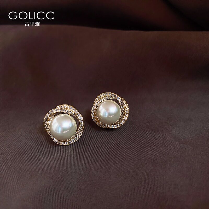 Alloy Spiral Pearl Earrings Woman South Korea Nets Red Temperamental Ear Needle Advanced Sensation Atmospheric Ear Accessories 2022 New Tide