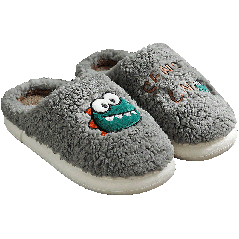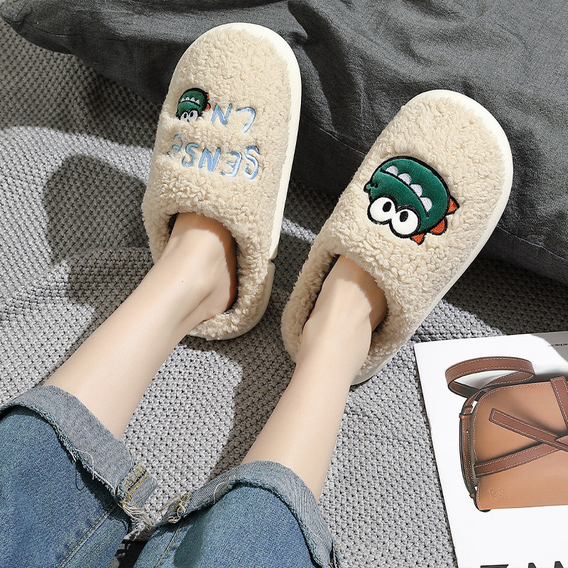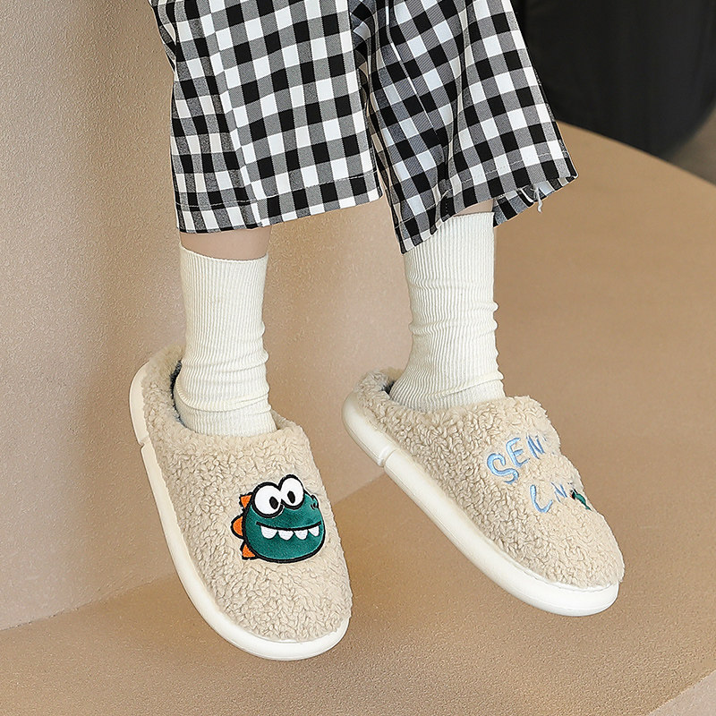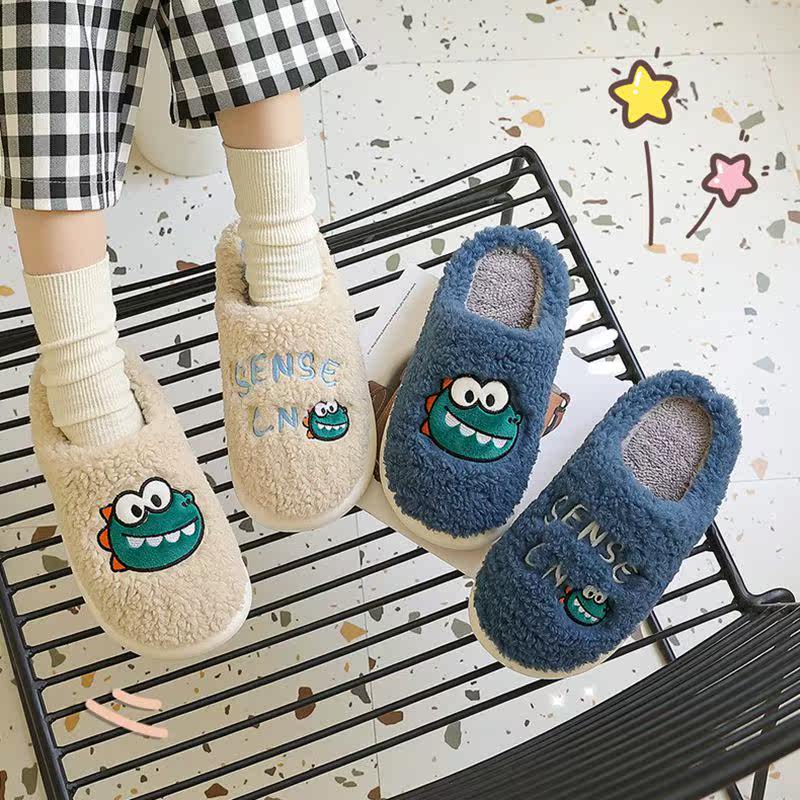Wool cotton slippers female winter cute home 2021 new male adult cartoon dinosaur couple Korean half pack