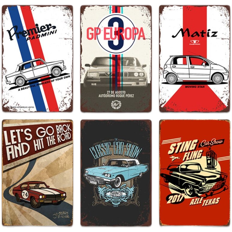 New retro car iron skin painting Cafe Bar Background wall decoration picture locomotive frame-free hanging drawing