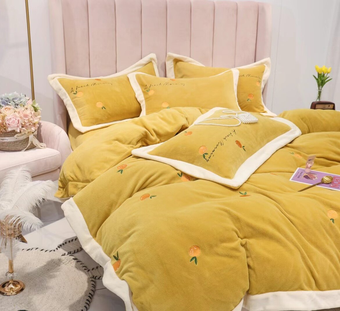 High-end custom high-gram milk velvet four-piece heavy-duty embroidery non-refundable
