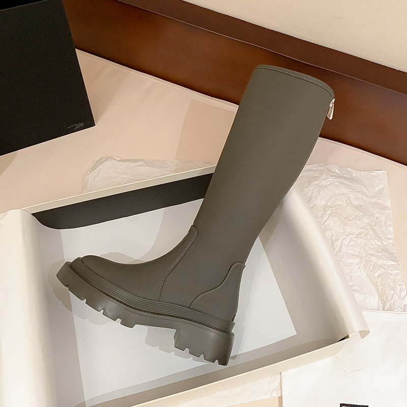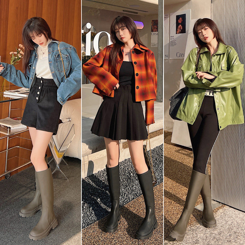 Inside heightening boots small sub-cylinder boot with suede card Its green long boots though knee-female boots High cylinder Cavaliers Long Boots Woman