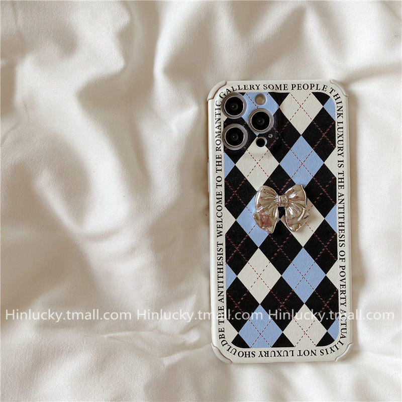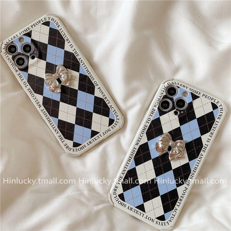 hinlucky Ins College Rhinestone Bow for iPhone 13pro Max Apple 11 Cell Phone Case XR Xsmax 8plu