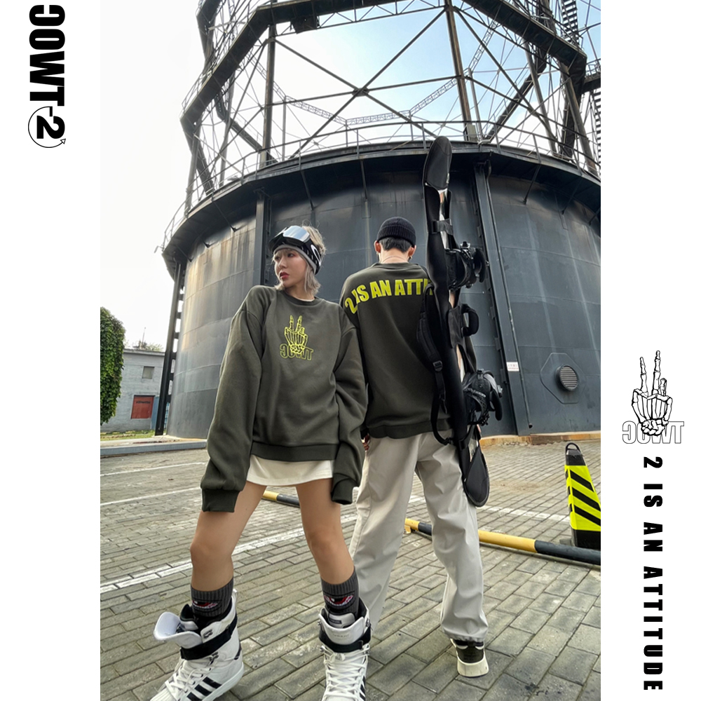 TWOC minus two degrees 2122 new small Yeah ski hoodie fleece round neck sweatpants thick cotton T tide brand inside
