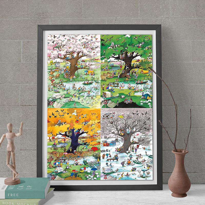 HEYE cartoon series German imported puzzles with 2000 difficult pieces, four seasons, spring, summer, autumn and winter street parade