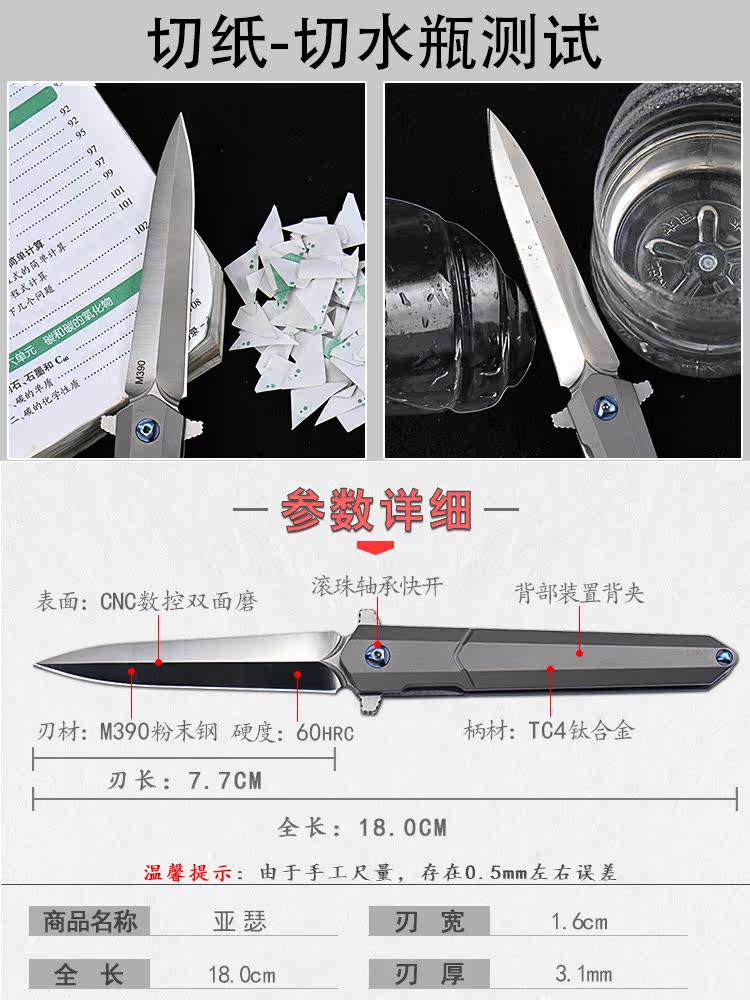 Too wow M390 steel folding knife famous knife portable outdoor folding knife high hardness knife self-defense bearing titanium alloy knife