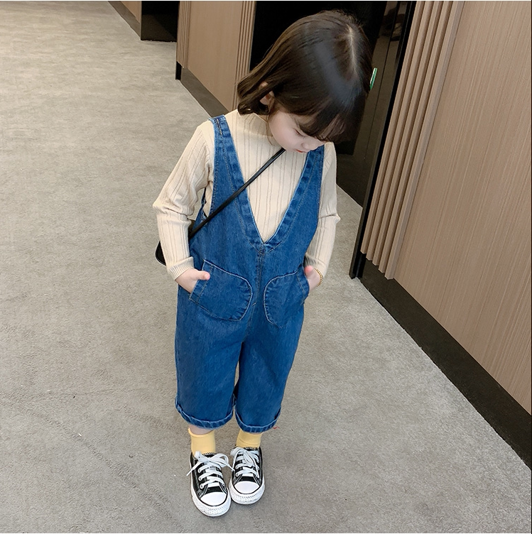 Hong Kong girl's autumn clothing Cowboy cuddling bag pants suit 2021 new Korean version Fashion children suit baby spring and autumn slim fit