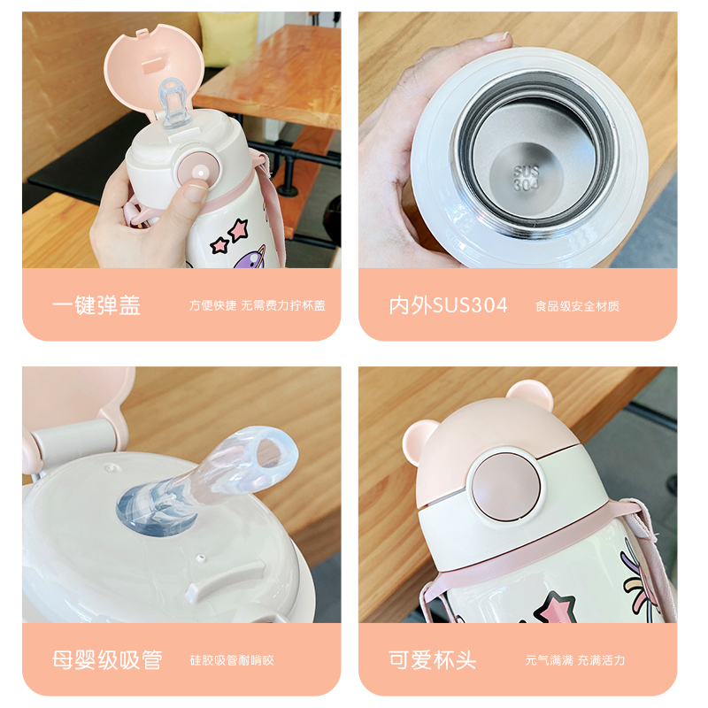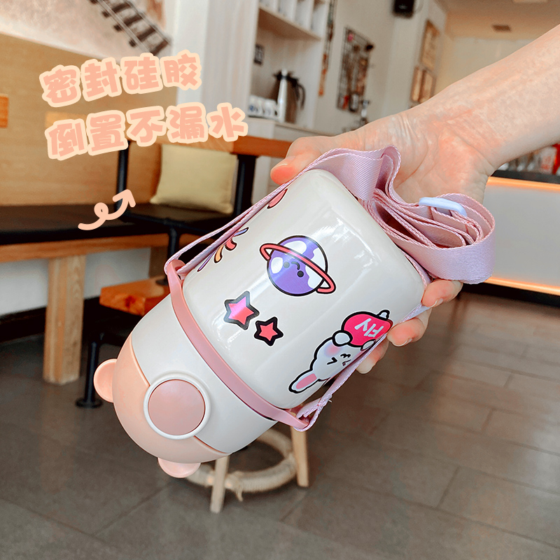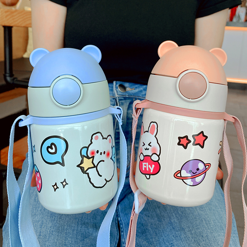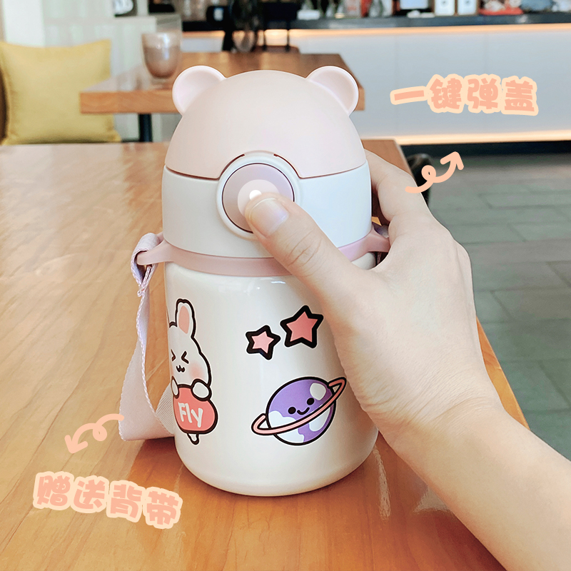 Children's insulated cup female students portable straw water glasses for school special kindergarten cups cute large capacity kettle