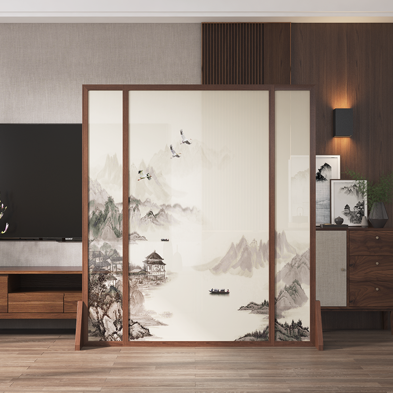 New Chinese-style screen partition living room office simple modern bedroom block home entrance porch hotel solid wood