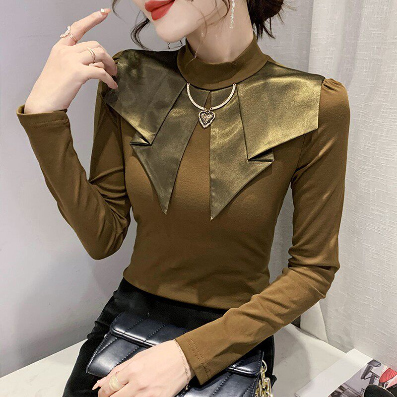 Tide brand 2022 autumn and winter new Korean version fashion stand-up collar long-sleeved T-shirt women's retro fashion self-cultivation bottoming clothes