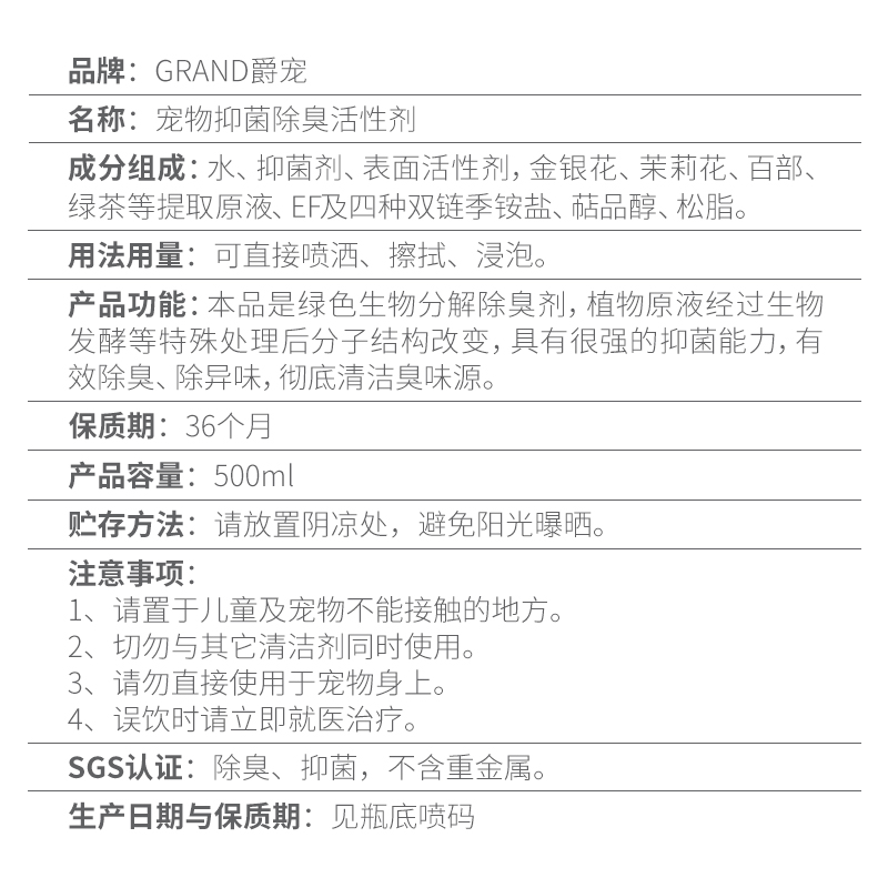 Pet Deodorant Bacteriostatic Deodorant Disinfectant Sterilization Decomposition Deodorant Deodorant Spray Active Agent 500ml