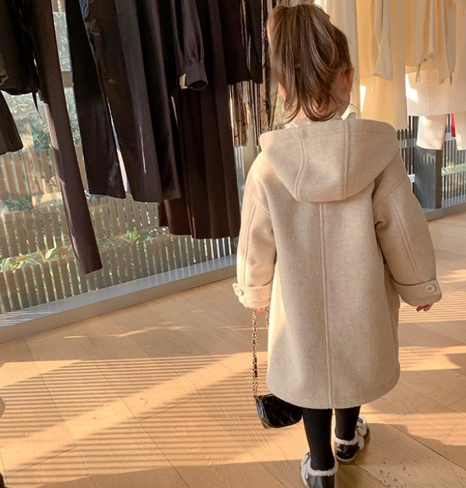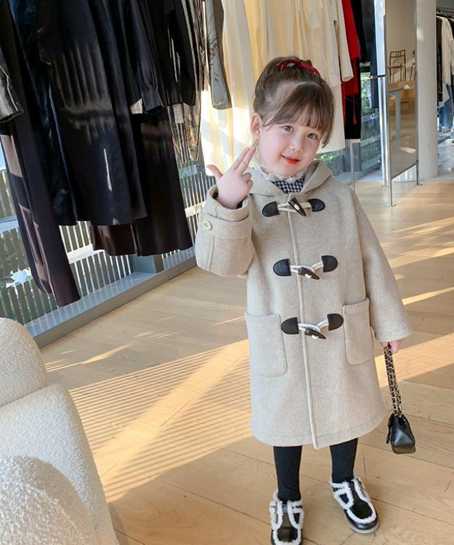 Girl's wool jacket buffalo horn buttoned foreign pie Son Coat 2022 Autumn Winter New Thickened Warm Coat Children Clothing