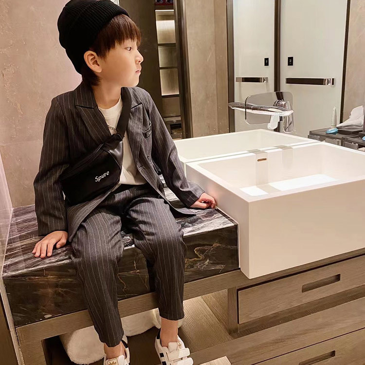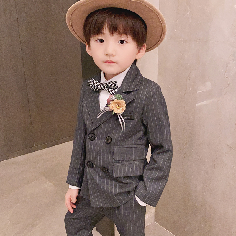 Boy suits suit 2021 Fall new children Korean version striped Little Western suit Flowers Tuxedo Piano