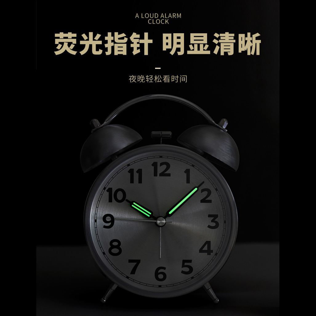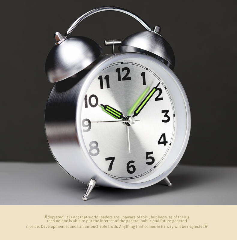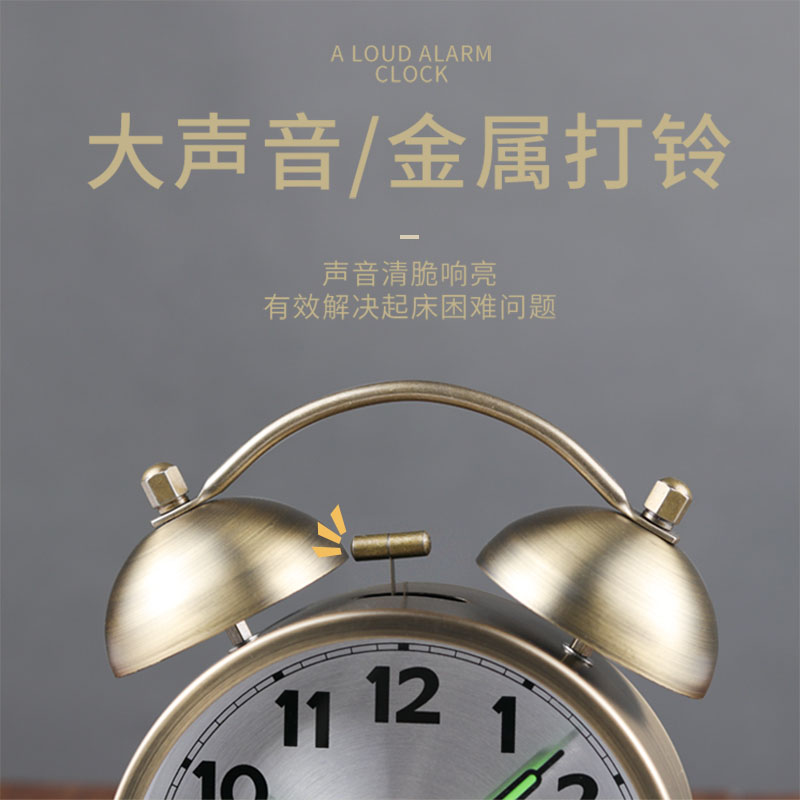 Retro metal clock alarm clock students with silent bedside clock living room home decoration loud sound alarm night light