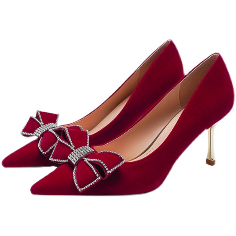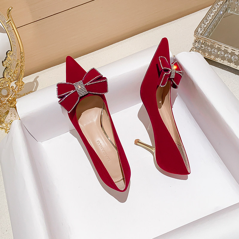 Niche wedding shoes women's 2021 new bowknot red Xiuhe wedding dress two-wear bridal shoes not tired feet high heels