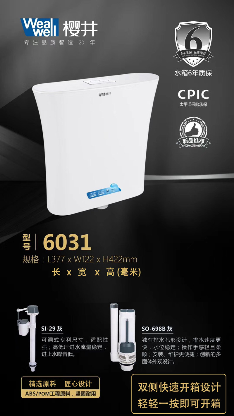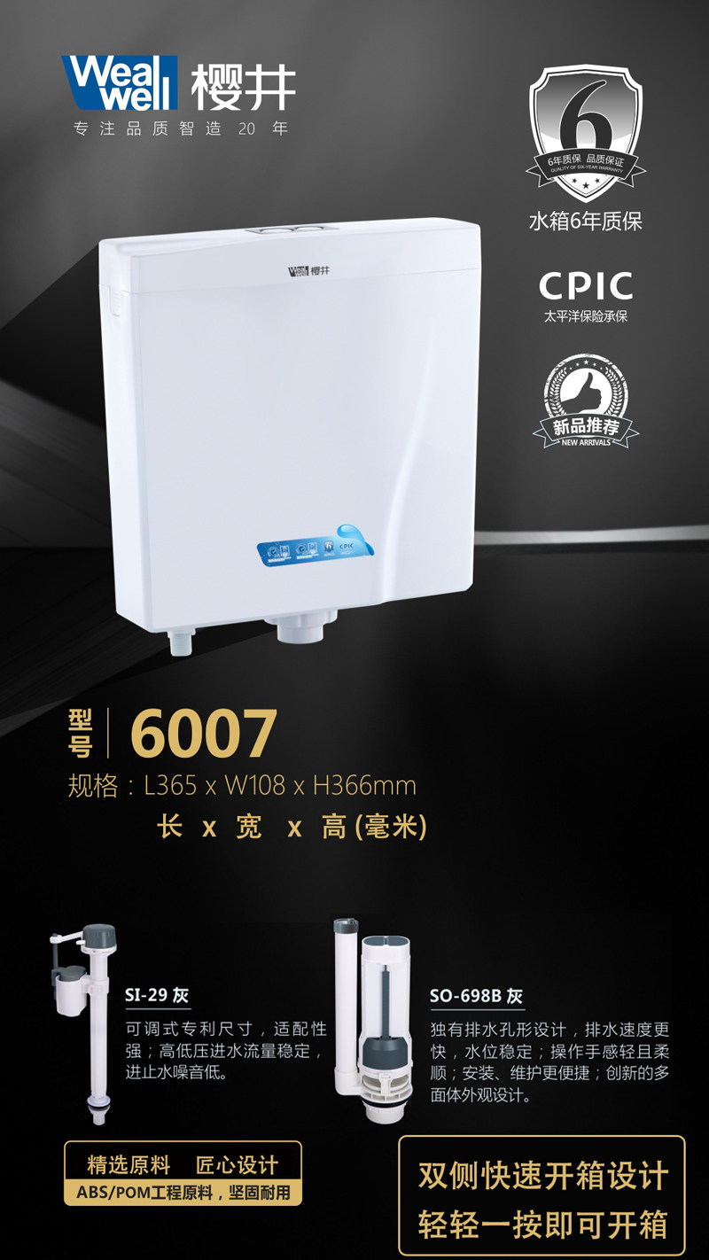 Cherry Well 6007 Small Brute Waist Wall-mounted Wall Water Tank Bathroom Toilet Bathroom Squatting Squat Pit Plastic Flushing Tank