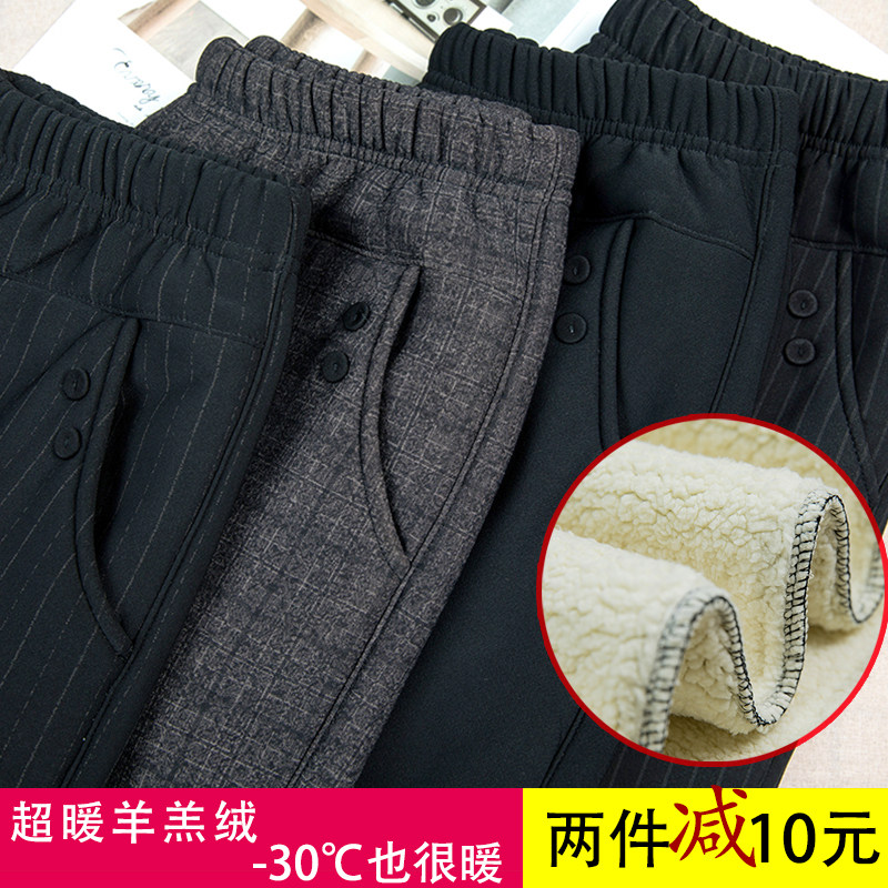 Mother's warm cotton trousers spring, autumn and winter lamb velvet thickened middle-aged and elderly women's trousers grandma's long trousers loose outerwear