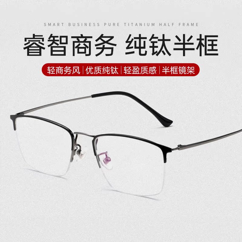 Ultra-light 7g pure titanium myopia glasses anti-blue light anti-radiation glasses men's flat light anti-fatigue eye protection with degrees