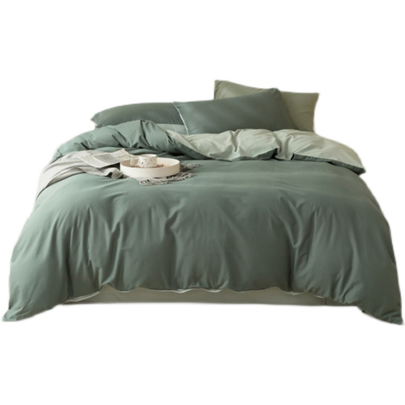 60 Gon Satin Mill Wool Pure Cotton Four Pieces Autumn Winter Thickened All Cotton Morandi Color Sheets Quilt Cover Pure Color Minimalist Wind