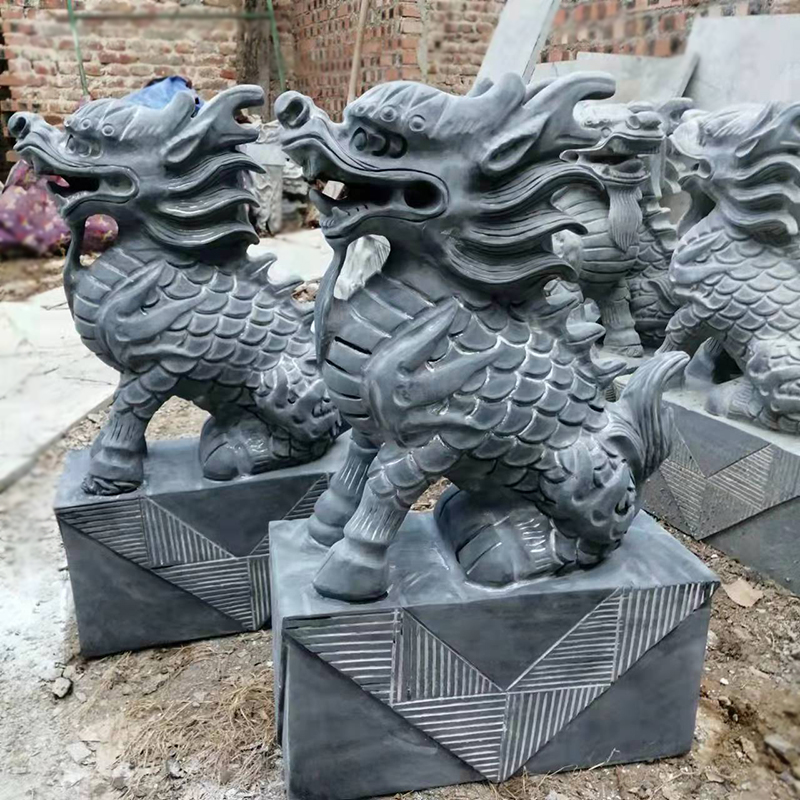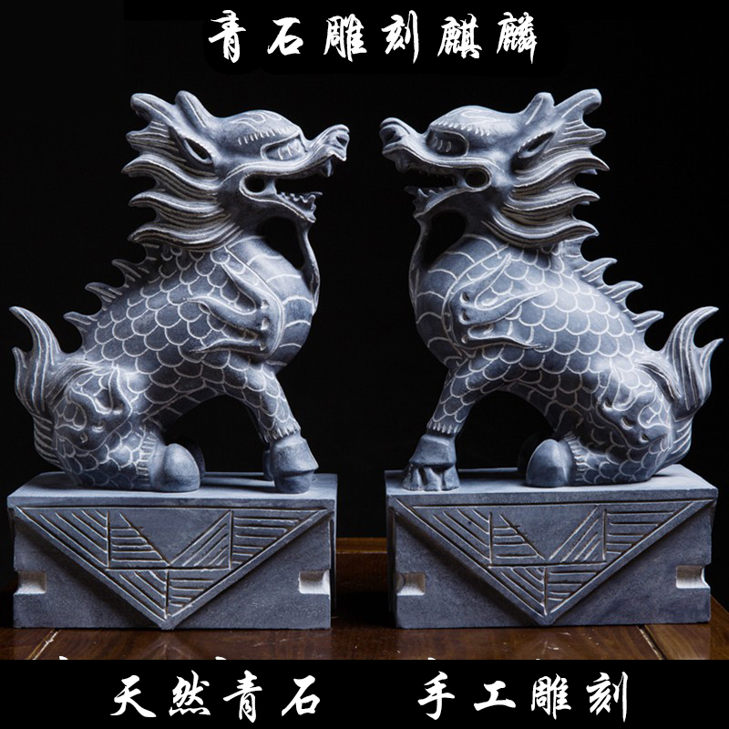 Stone sculptures Qingshi Kirin pendulum a pair of theorbeast town residence Courtyard Balcony Company Doorway Home Stones Kirin