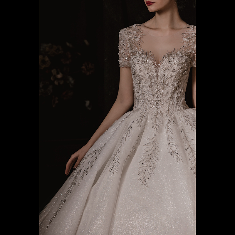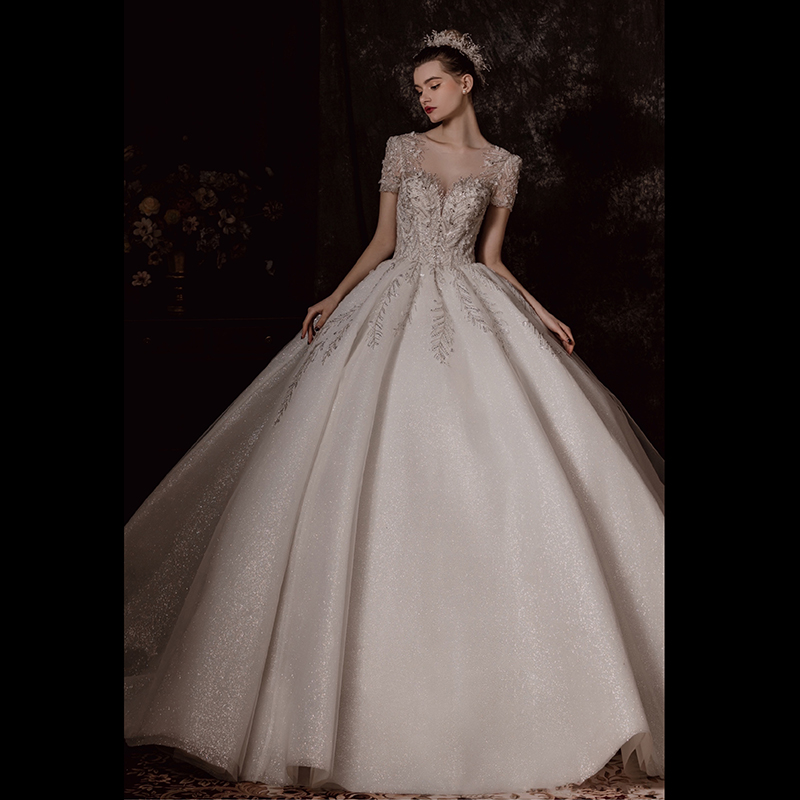 Main wedding dress 2022 new brides small sub-palace windy heavy work extravagant High sense drag exhaust gas light 2021