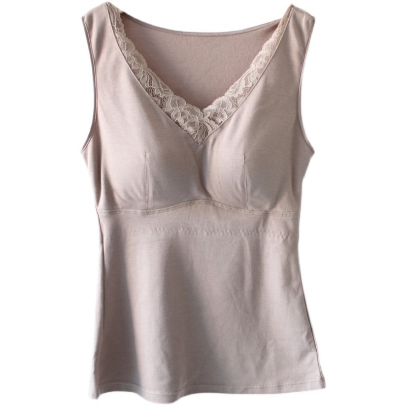 Lazy clothes warm vest women's autumn and winter single-layer thin velvet with chest pad insulation cup wear-free bra V-neck bottoming top