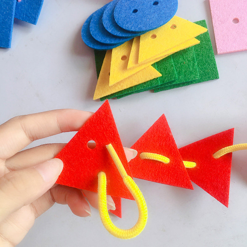 Kindergarten small, medium and large class area material non-woven fabric area corner put beaded shape threading puzzle parent-child early education