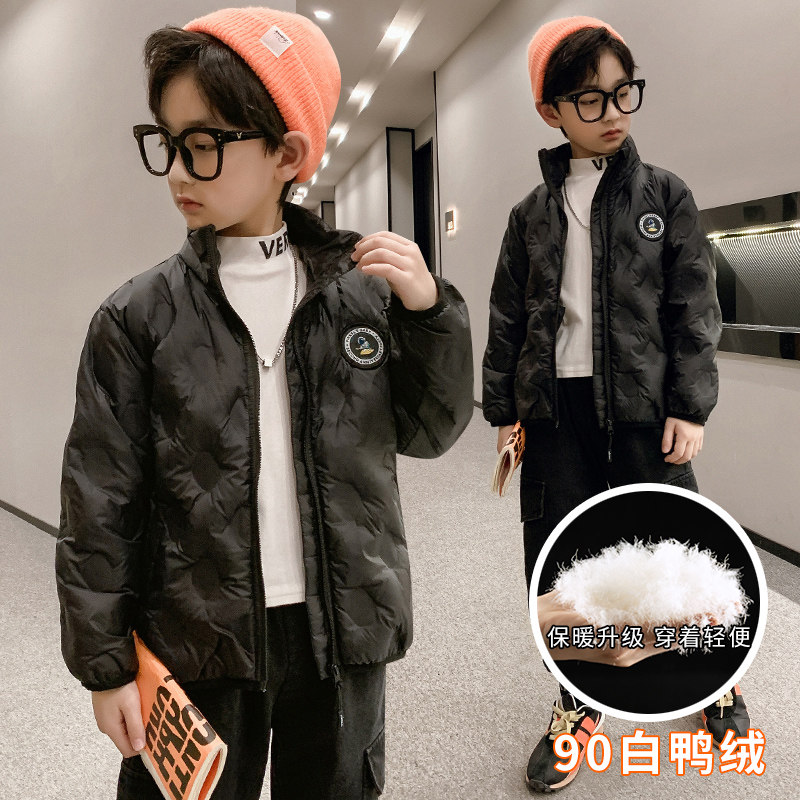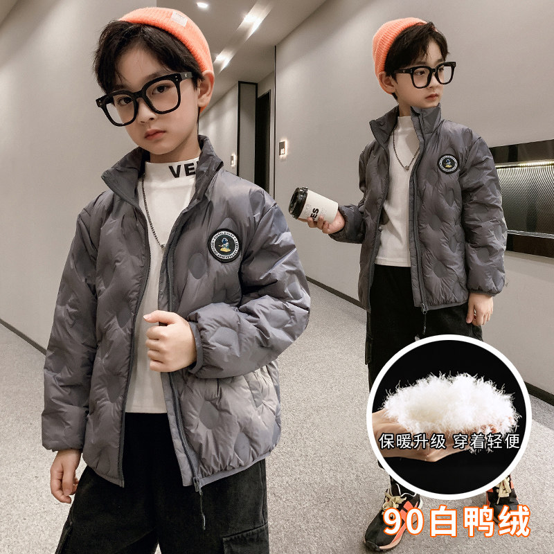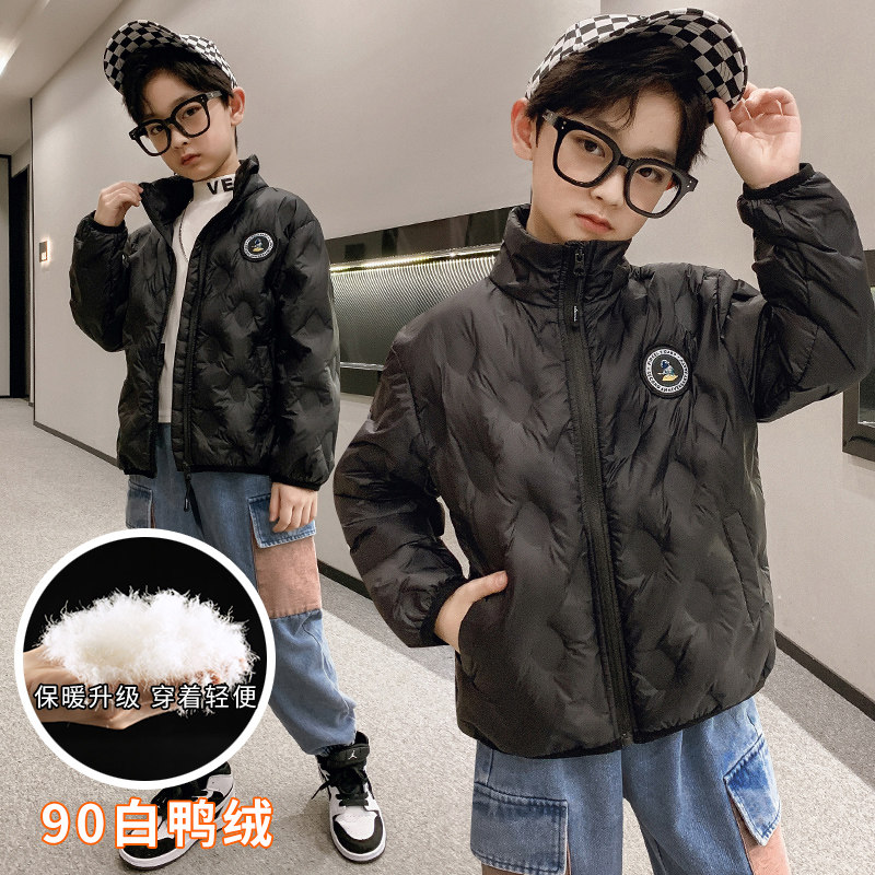 Boys' Lightweight Down Jacket White Duck Down Children's Short 2022 New Middle and Big Boys Western Style Autumn and Winter Jacket