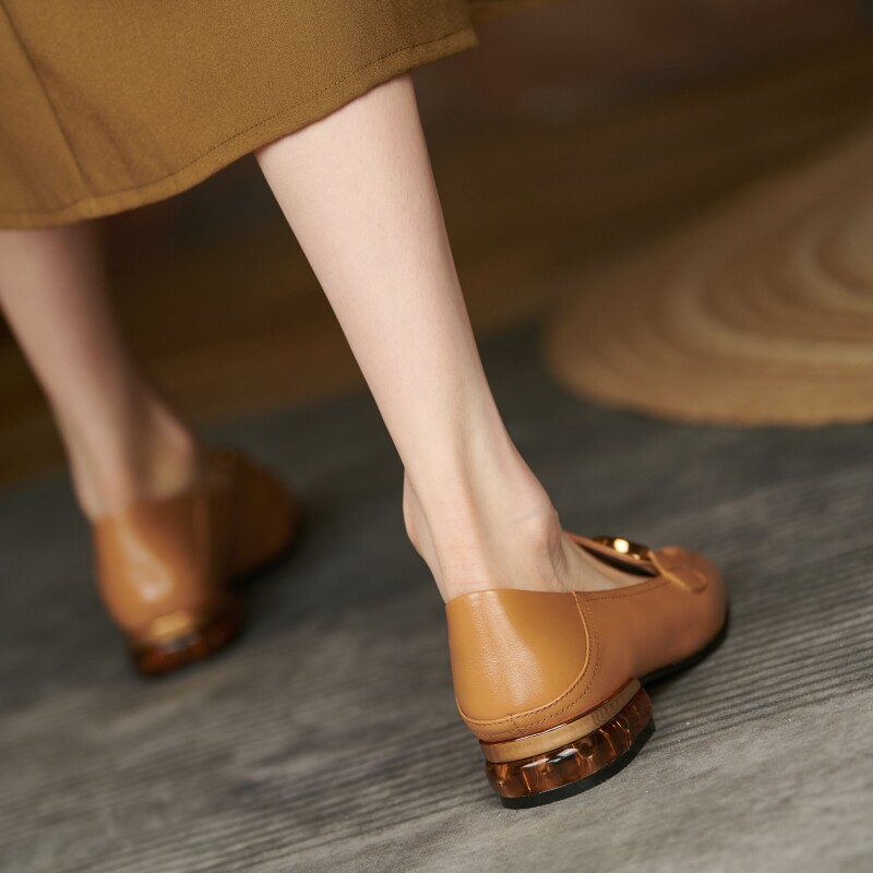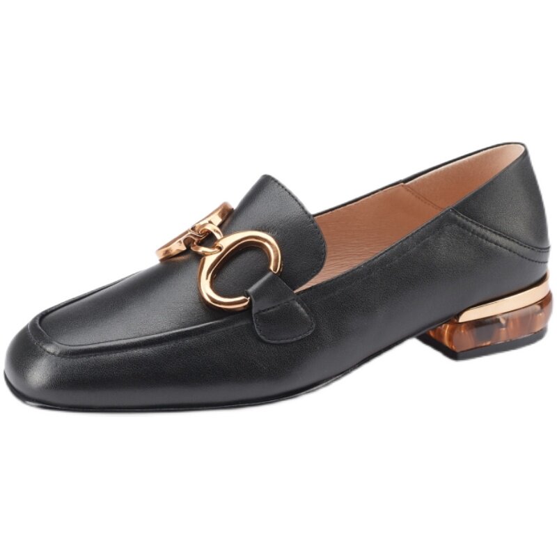 Orange peel CHEN super soft retro British small leather shoes medium thick heel square head new loafer leather bag shoes women