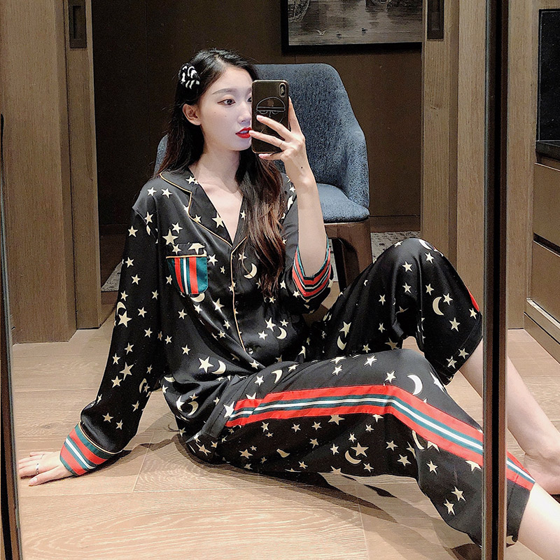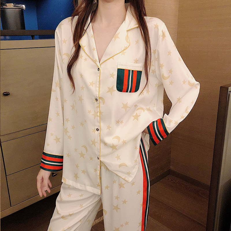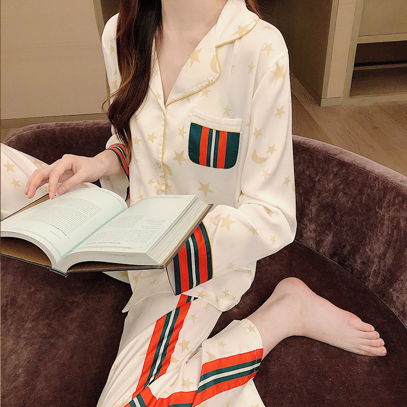 MAJE MANTAS silk pajamas women's autumn and winter thin section temperament fashion striped high-end home service suit