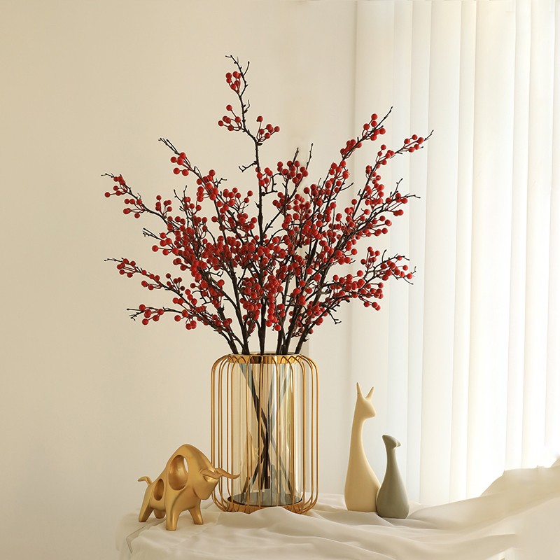 Red Fruit Hair Chahed Fruit Emulation Flower Living Room Pendulum With Red Berries Red Berries Winter Green Fruits Lucky Sybean Fake Flower Decoration Furnishing