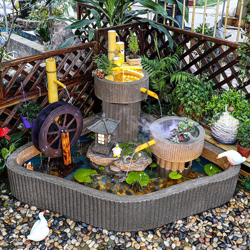 Flowing Water Landscape Decoration Fish Pond Chinese Outdoor Patio Swing Piece Balcony Yard Garden Arrangement Fountain Villa for View