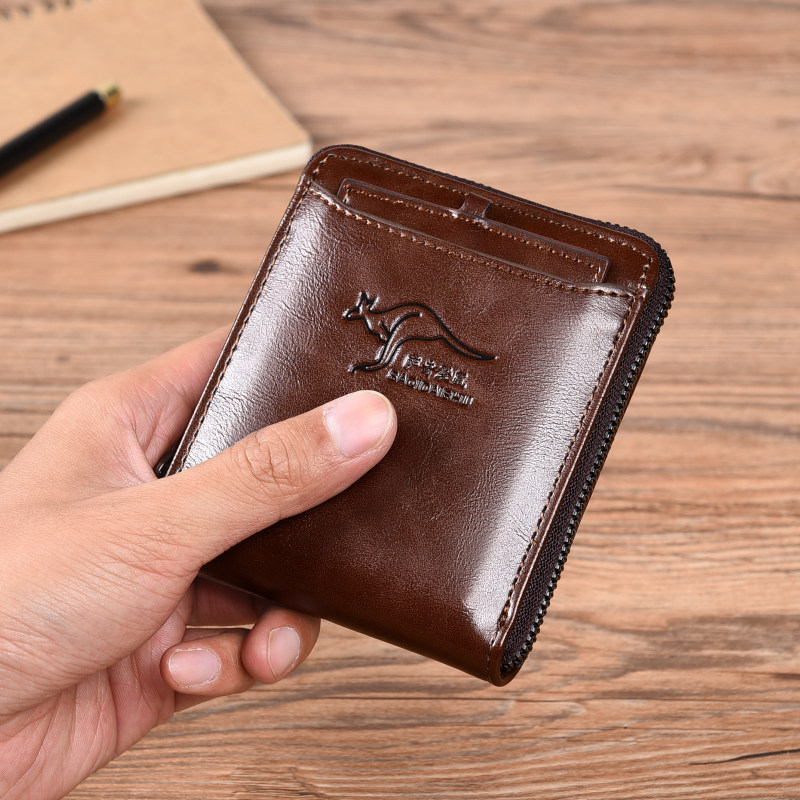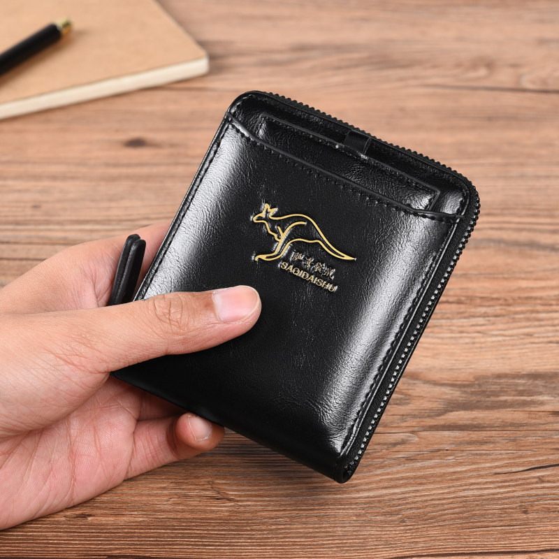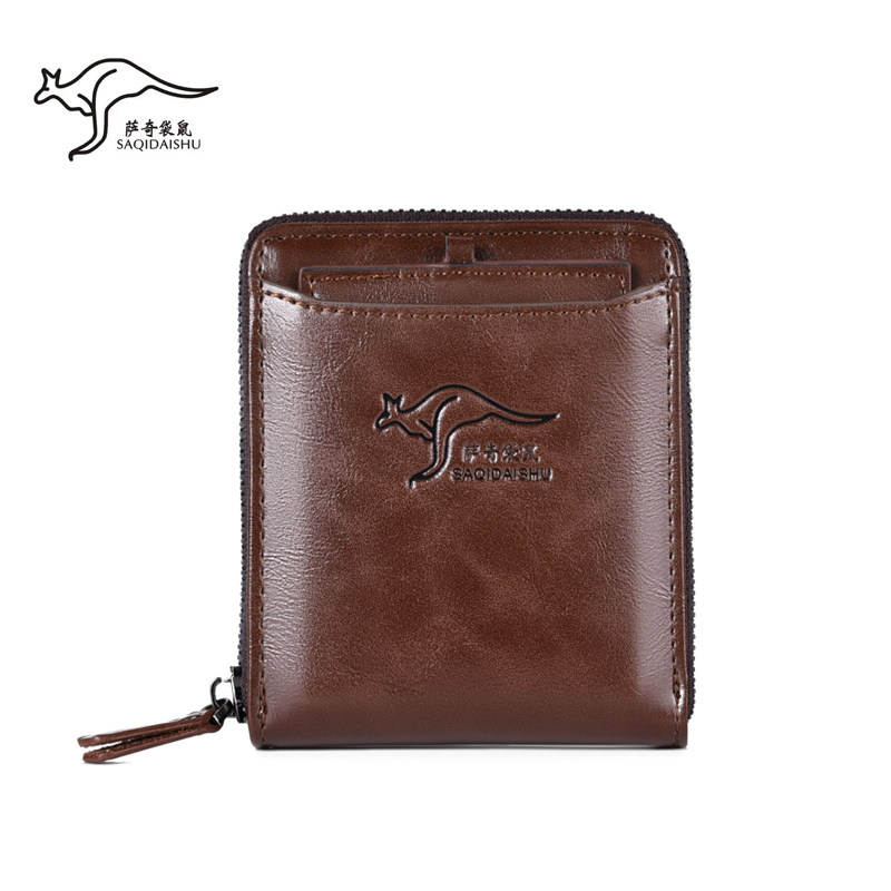 Sachi Kangaroo Men's wallet Short-style Necklace Multifunction Driver's License Card Bag Retro Leather Wallet THEFT PROOF Money clip men