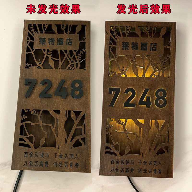 Hotel luminous house number custom antique creative Chinese solid wood hotel box house number number plate