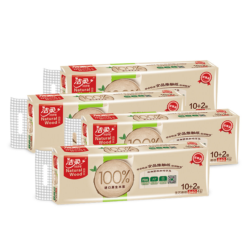 Clean and soft tissue no core drum toilet paper No incense natural wood low whiteness toilet paper thickened 4 floors 48 rolls whole box affordable